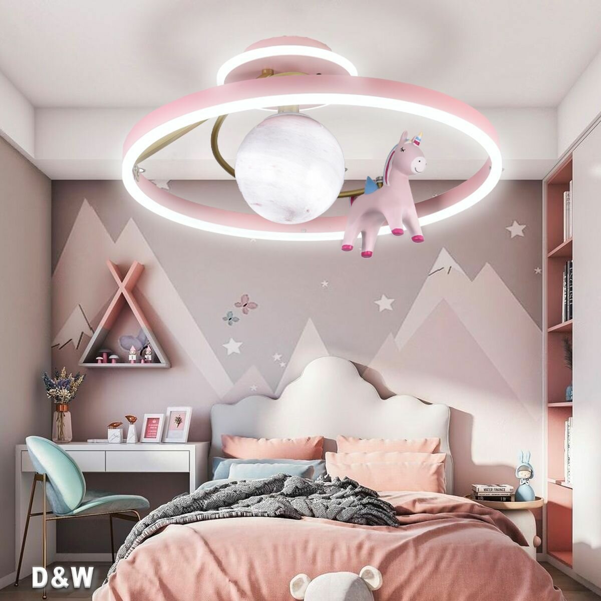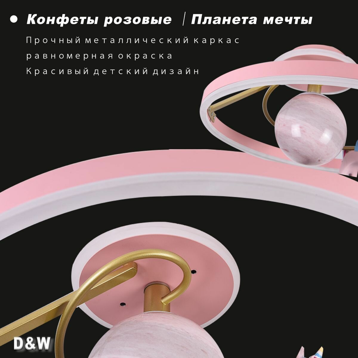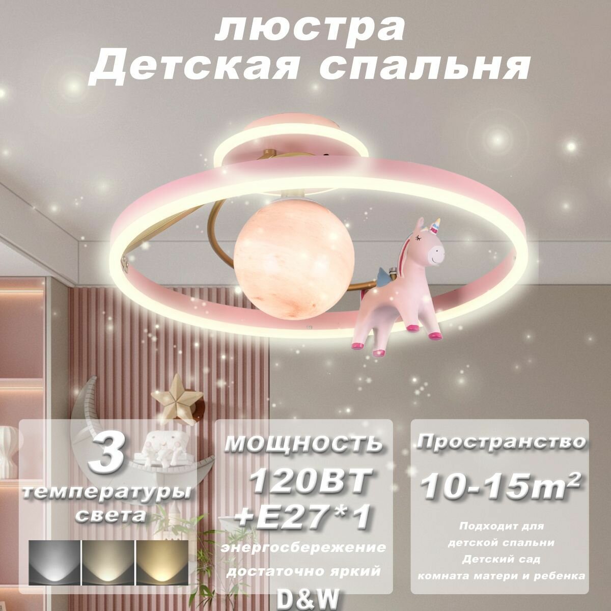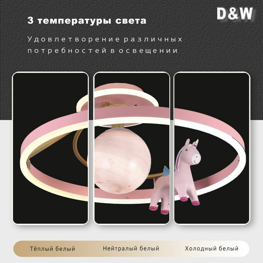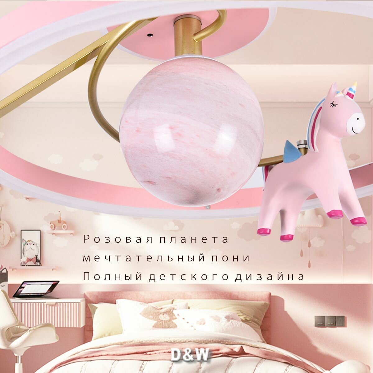 Люстра Потолочный светильник для детской комнаты led/676/50cm/120 Вт+E27*1/Розовая планета Мечта Пегас /Детский подарок интересное: