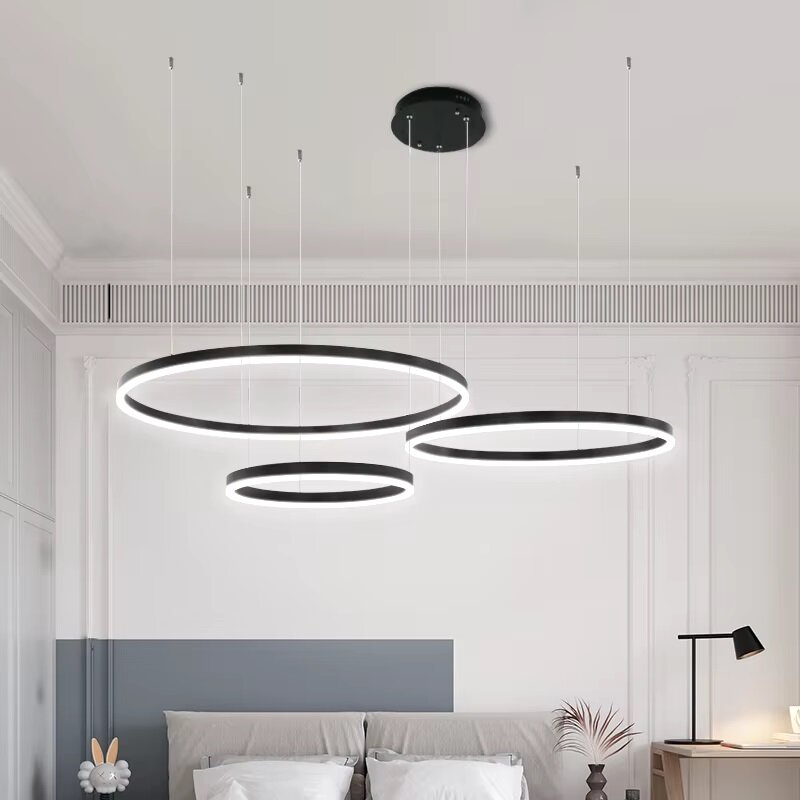Купить Подвесная светодиодная люстра 3 кольца 40*60*80 черная с пультом и приложением