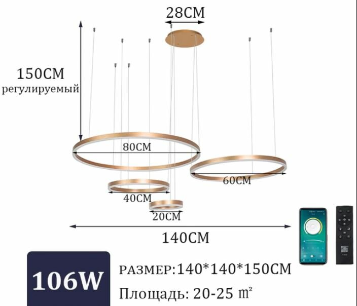 Ниже Вы можете прочитать отзывы на Подвесная светодиодная люстра 4 кольца 20*40*60*80 белая пульт приложение, ознакомится с подробными характеристиками, посмотреть интересные обзоры и фотографии на Подвесная светодиодная люстра 4 кольца 20*40*60*80 белая пульт приложение.