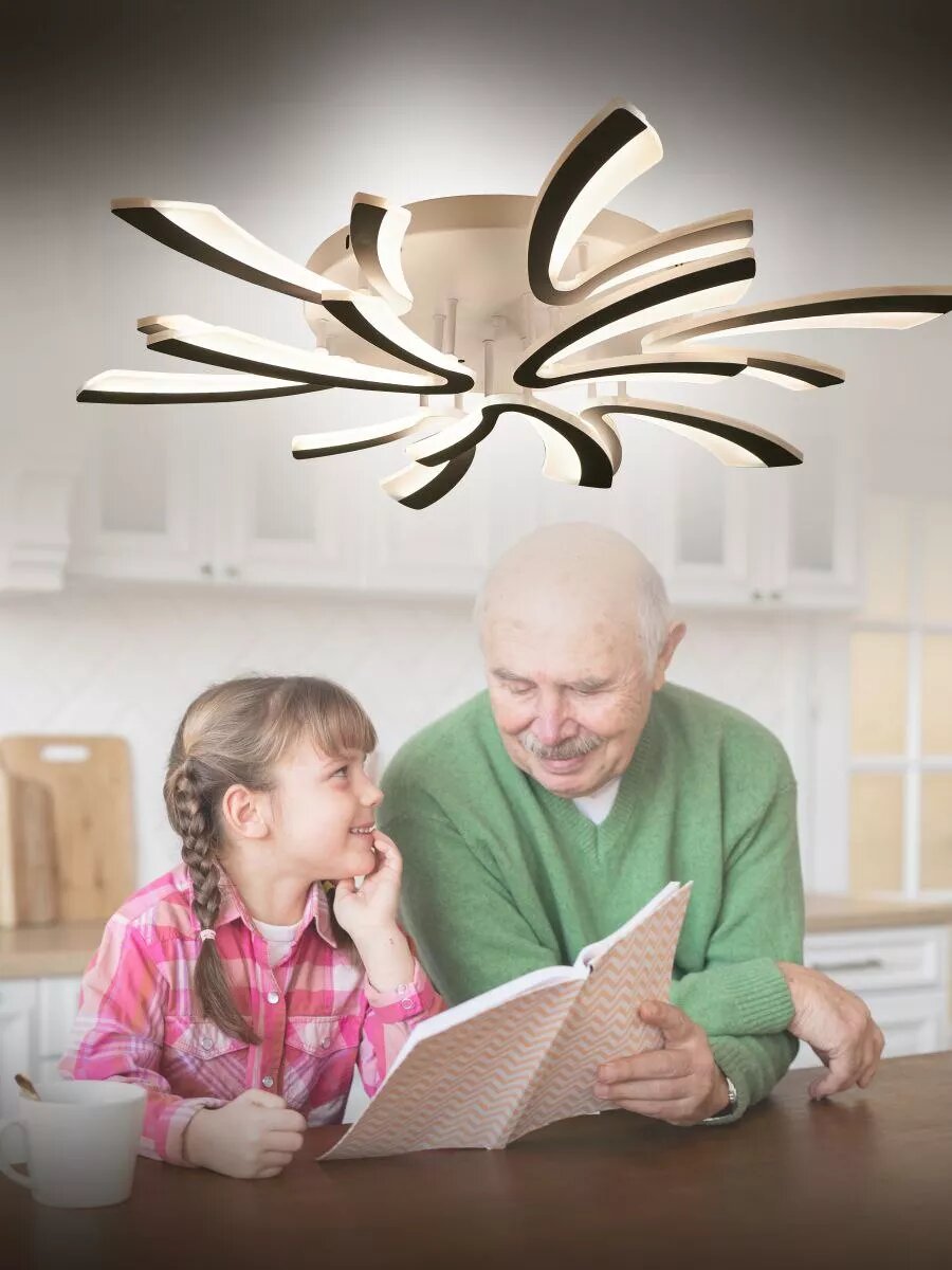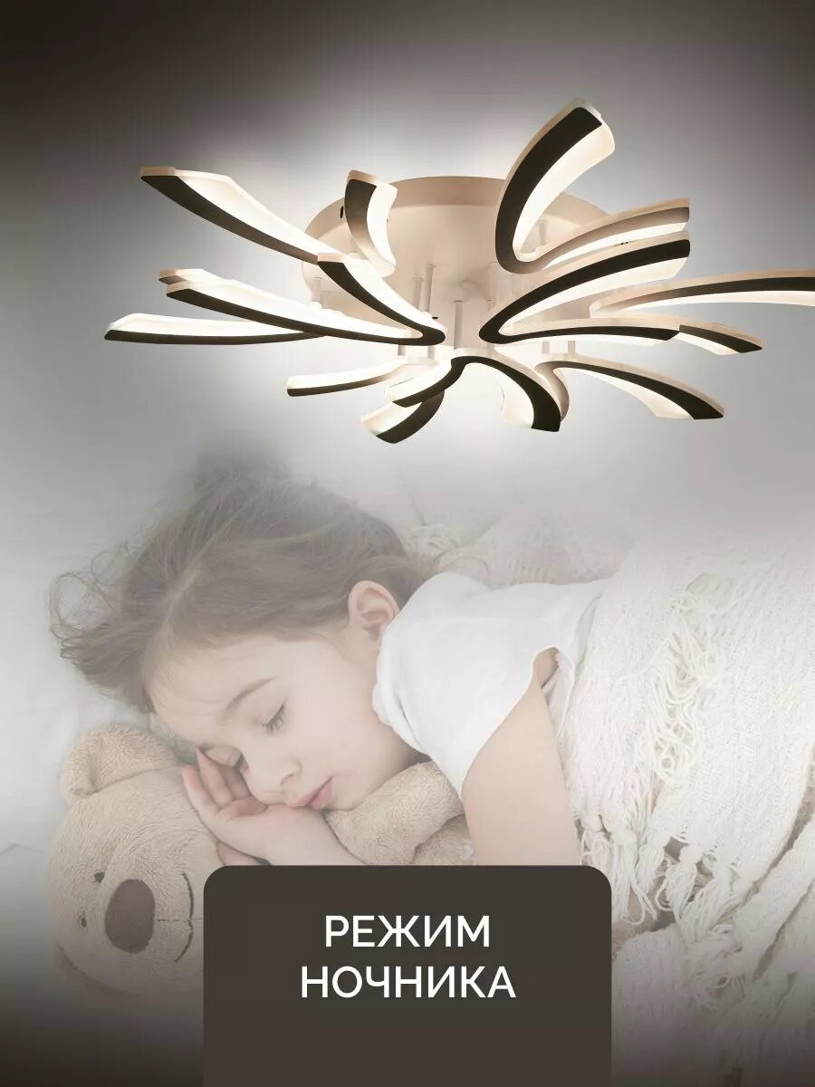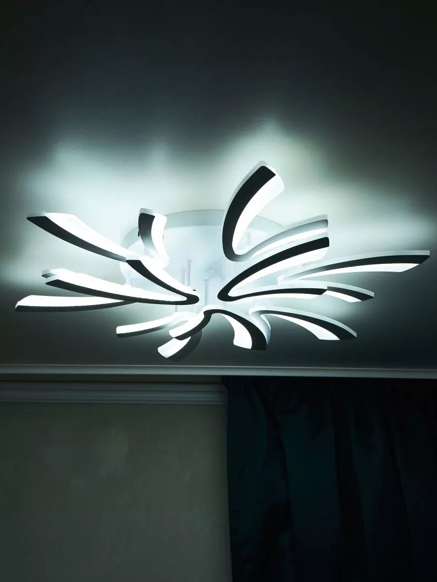 Управляемая люстра потолочная светодиодная с пультом 120 вт 30м² 3500-6500К на кухню, в гостиную