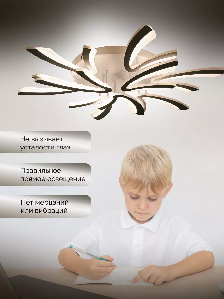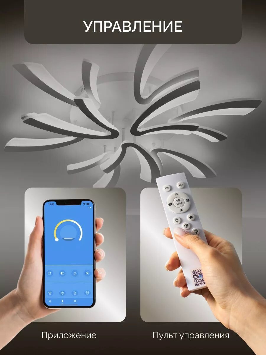 Управляемая люстра светодиодная потолочная c пультом и голосовым управлением 190 Вт 30 м² 3500-6500К для кухни, гостиной