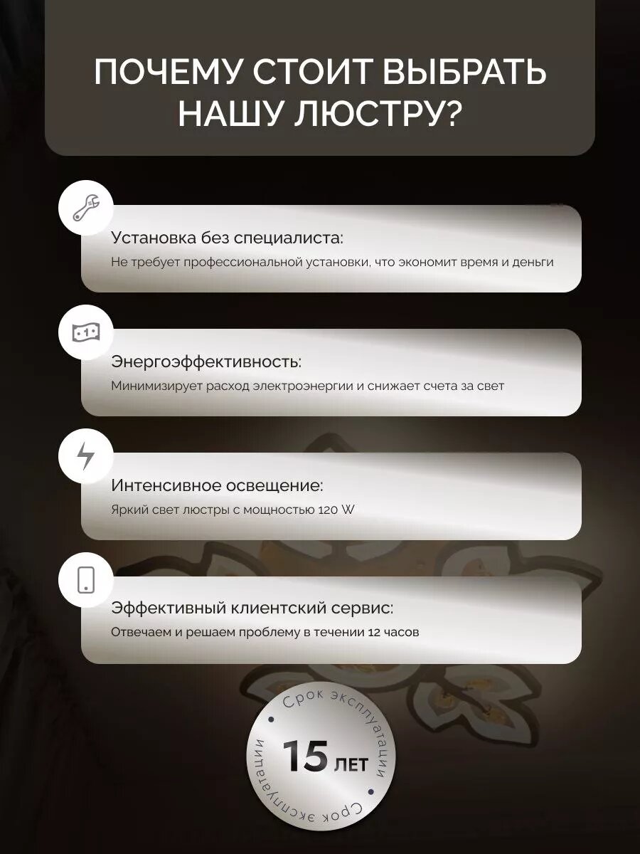 Управляемая люстра светодиодная потолочная c пультом и голосовым управлением 120 Вт 20 м² 3500-6500К для кухни, гостиной