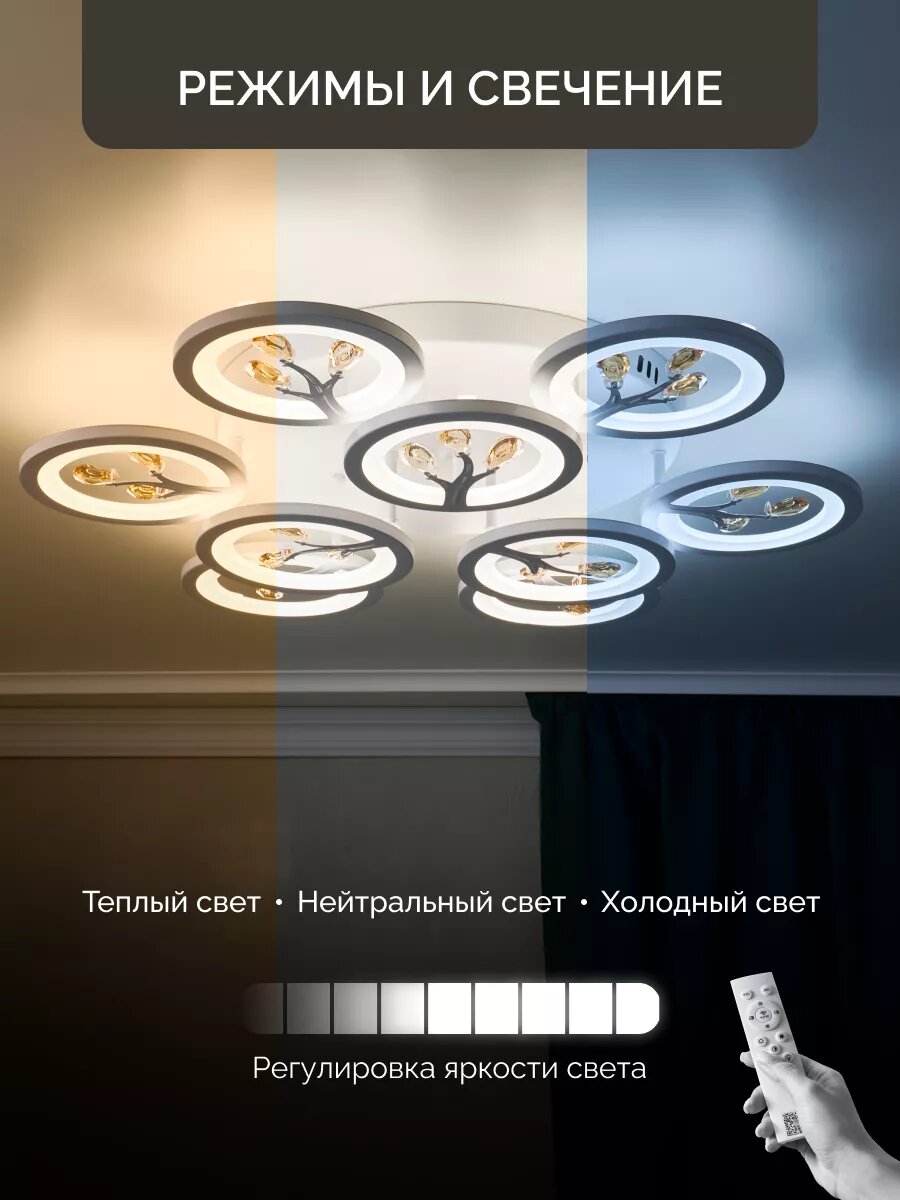 СохранитьУправляемая люстра светодиодная потолочная c пультом 190 Вт 30 м² 3500-6500К для кухни, гостиной интересное: