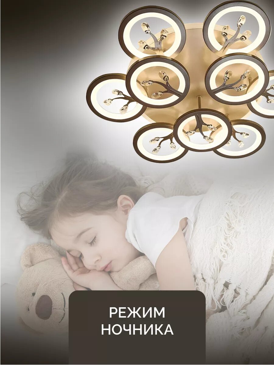 Управляемая люстра светодиодная потолочная c пультом и голосовым управлением 190 Вт 30 м² 3500-6500К для кухни, гостиной