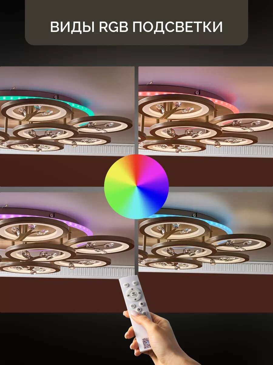 Управляемая RGB люстра потолочная светодиодная с пультом 190 вт 30м² 3500-6500К на кухню, в гостиную