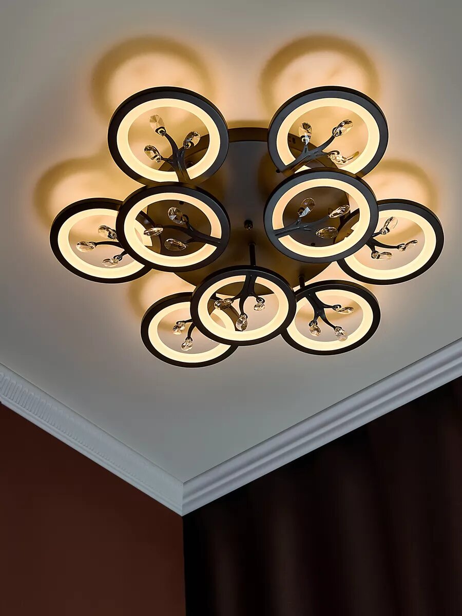 Управляемая люстра светодиодная потолочная c пультом и голосовым управлением 190 Вт 30 м² 3500-6500К для кухни, гостиной