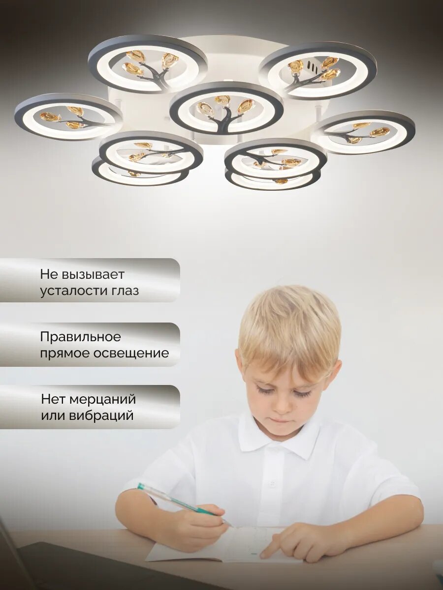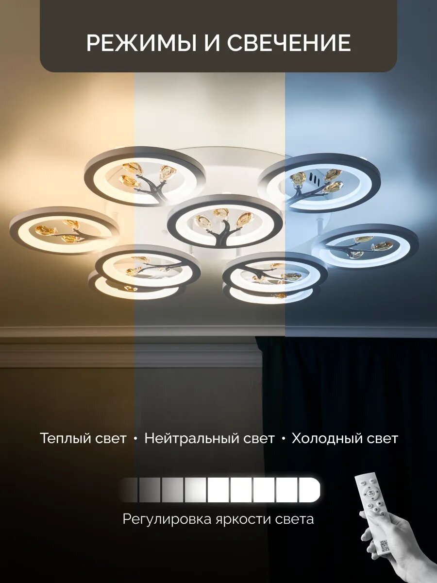 СохранитьУправляемая люстра светодиодная потолочная c пультом и голосовым управлением 190 Вт 30 м² 3500-6500К для кухни, гостиной интересное: