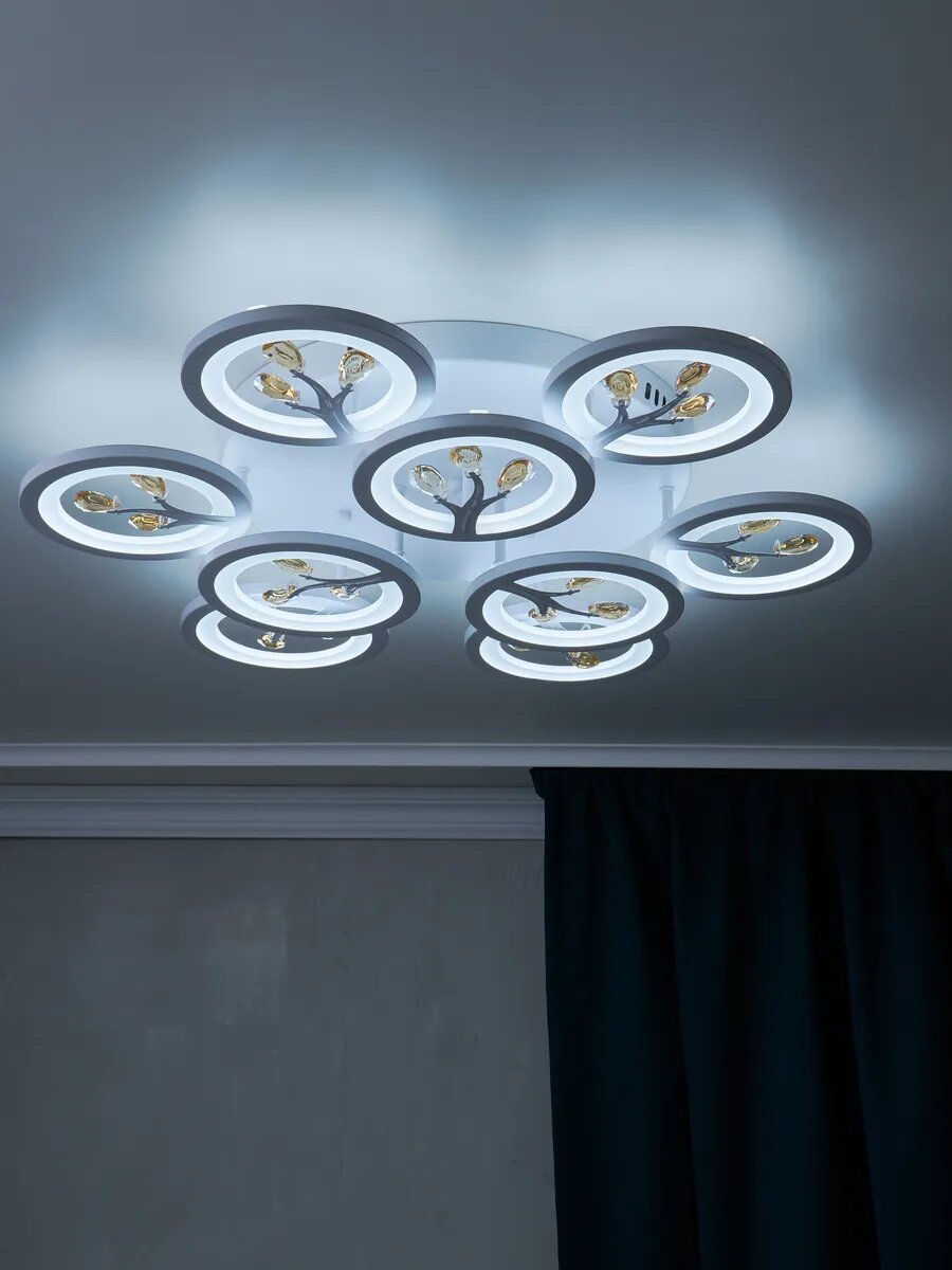 Ниже Вы можете прочитать отзывы на Управляемая люстра светодиодная потолочная c пультом и голосовым управлением 190 Вт 30 м² 3500-6500К для кухни, гостиной, ознакомится с подробными характеристиками, посмотреть интересные обзоры и фотографии на Управляемая люстра светодиодная потолочная c пультом и голосовым управлением 190 Вт 30 м² 3500-6500К для кухни, гостиной.