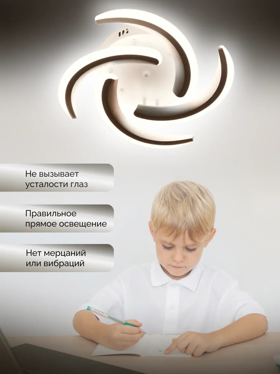Управляемая люстра потолочная светодиодная с пультом 120 вт 30м² 3500-6500К на кухню, в гостиную