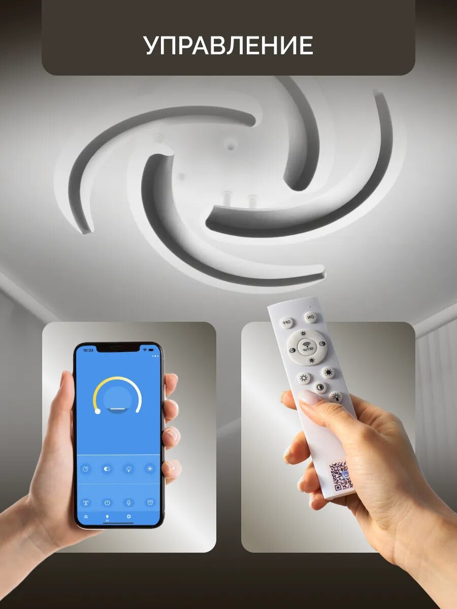 Управляемая люстра светодиодная потолочная c пультом LuarLed HotWheels 50 Вт 20 м² 3500-6500К для кухни, гостиной