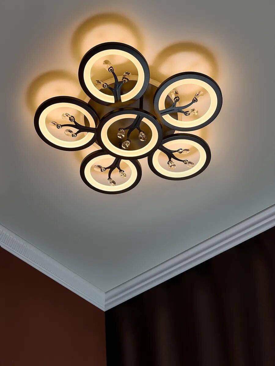 Управляемая люстра светодиодная потолочная c пультом и голосовым управлением 190 Вт 30 м² 3500-6500К для кухни, гостиной