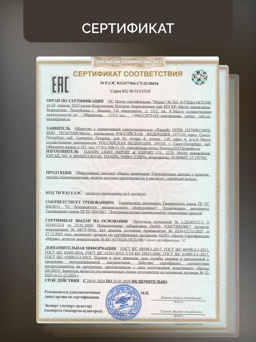 Управляемая люстра потолочная светодиодная с пультом 120 вт 30м² 3500-6500К на кухню, в гостиную