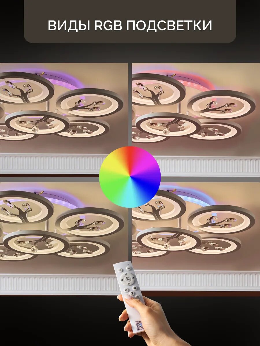 Управляемая RGB люстра потолочная светодиодная с пультом 190 вт 30м² 3500-6500К на кухню, в гостиную