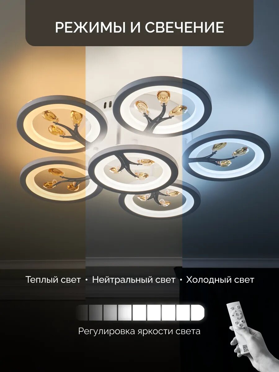 СохранитьУправляемая люстра светодиодная потолочная c пультом и голосовым управлением 120 Вт 20 м² 3500-6500К для кухни, гостиной интересное: