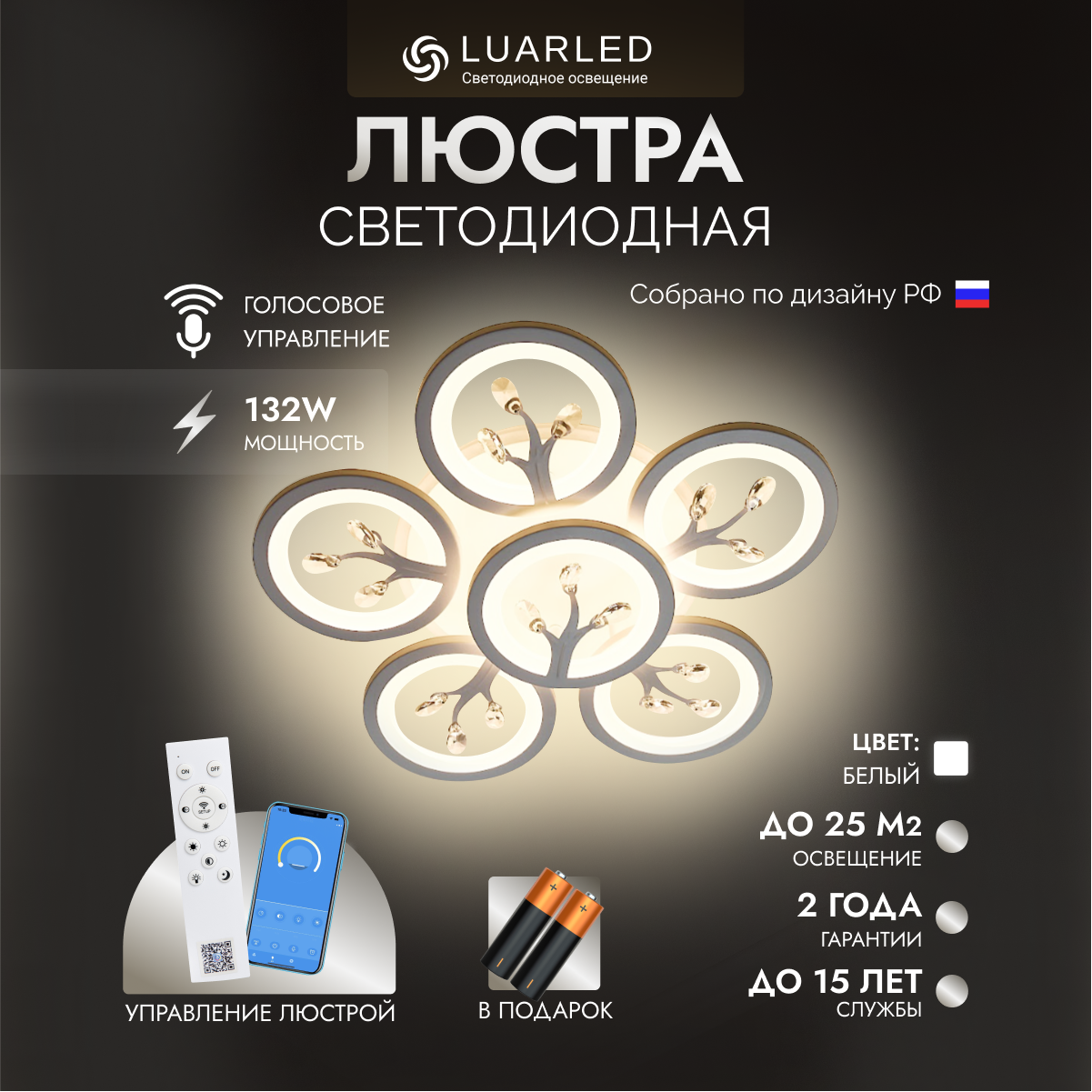 Управляемая люстра светодиодная потолочная c пультом LuarLed 120 Вт 20 м² 3500-6500К для кухни, гостиной