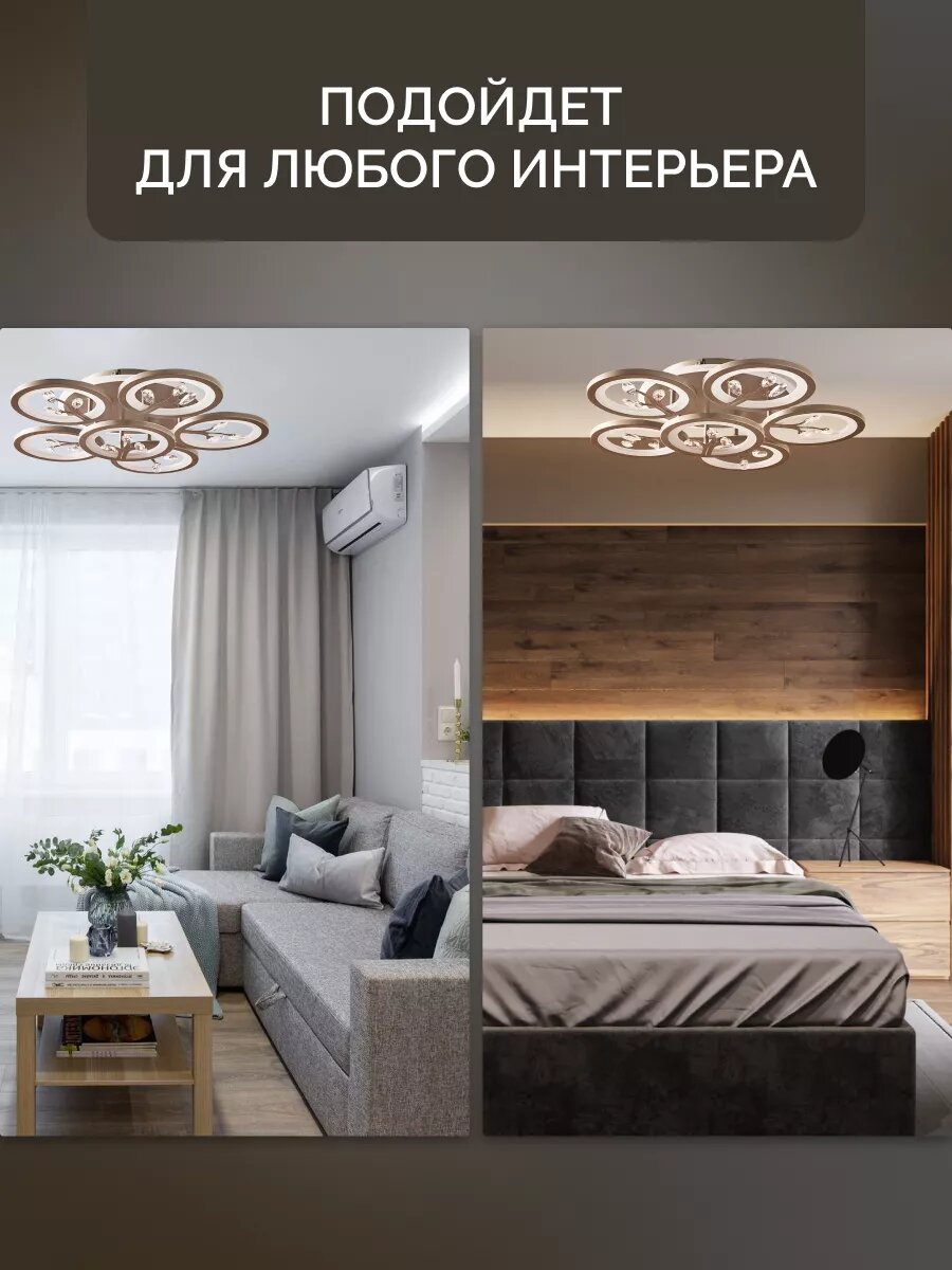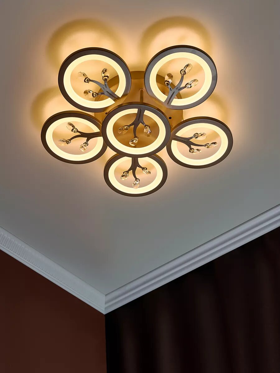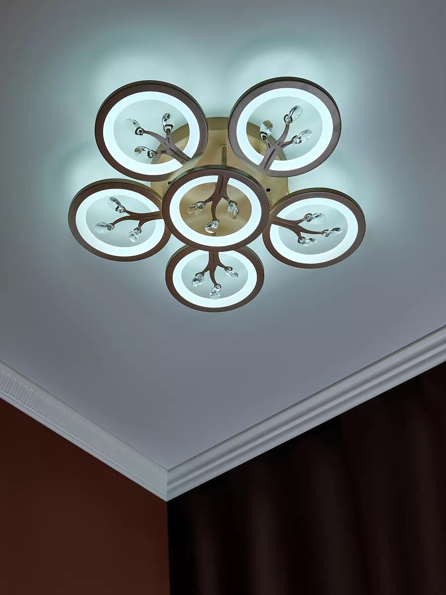 Управляемая люстра светодиодная потолочная c пультом и голосовым управлением 190 Вт 30 м² 3500-6500К для кухни, гостиной