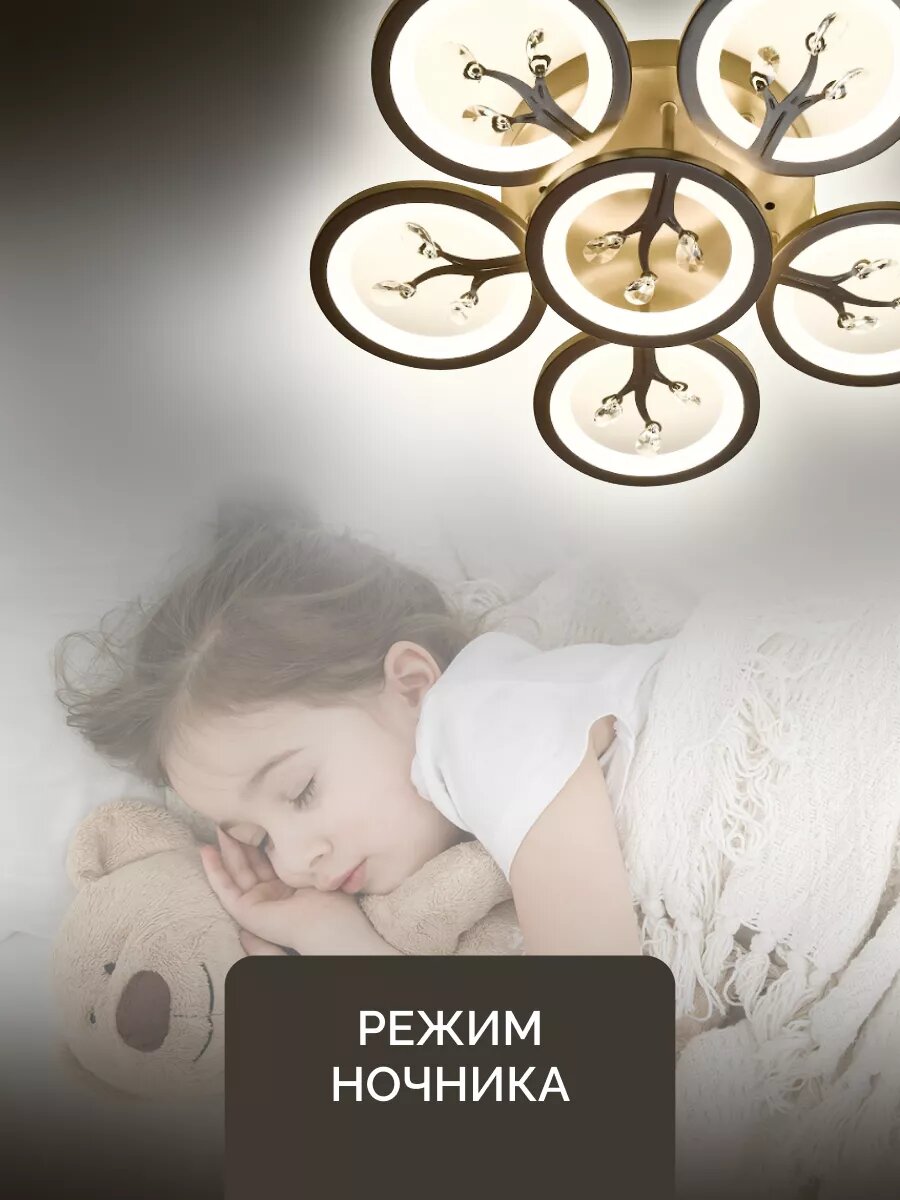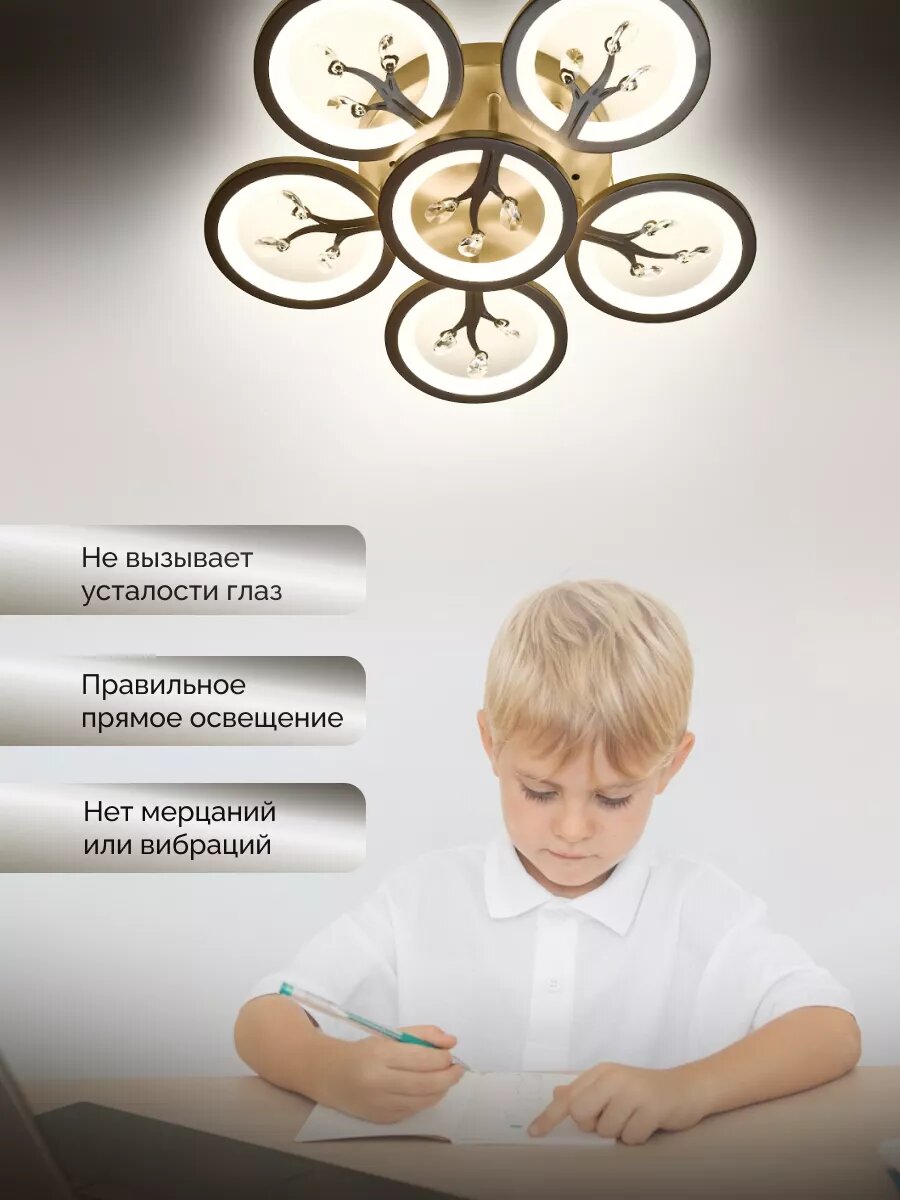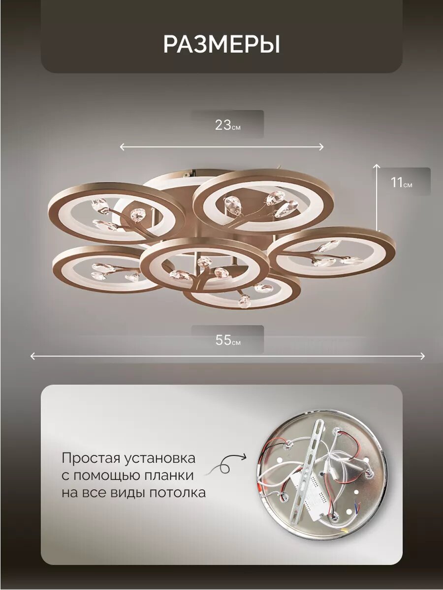 Управляемая люстра светодиодная потолочная c пультом и голосовым управлением 190 Вт 30 м² 3500-6500К для кухни, гостиной