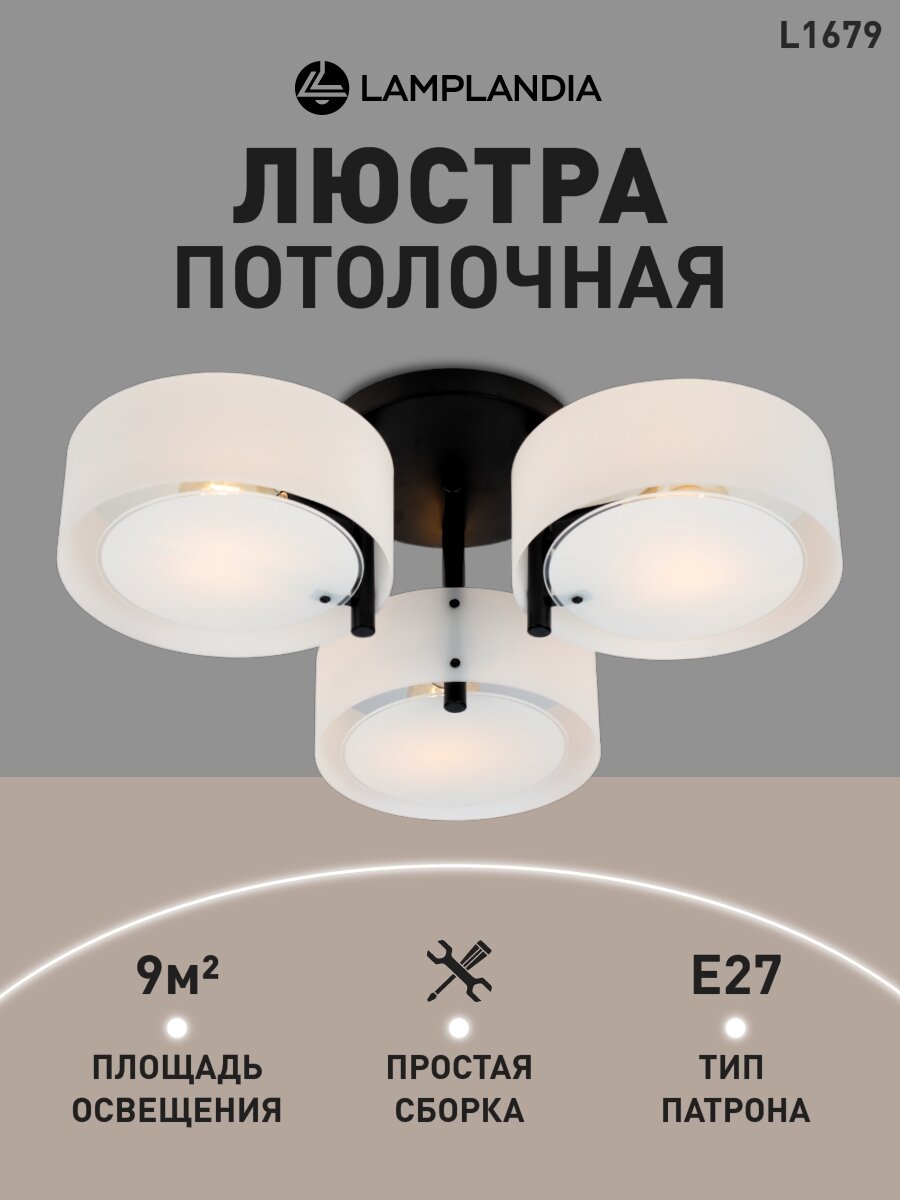 Люстра потолочная Lamplandia L1679 LIMA BLACK, E27*3 макс 40Вт интересное: