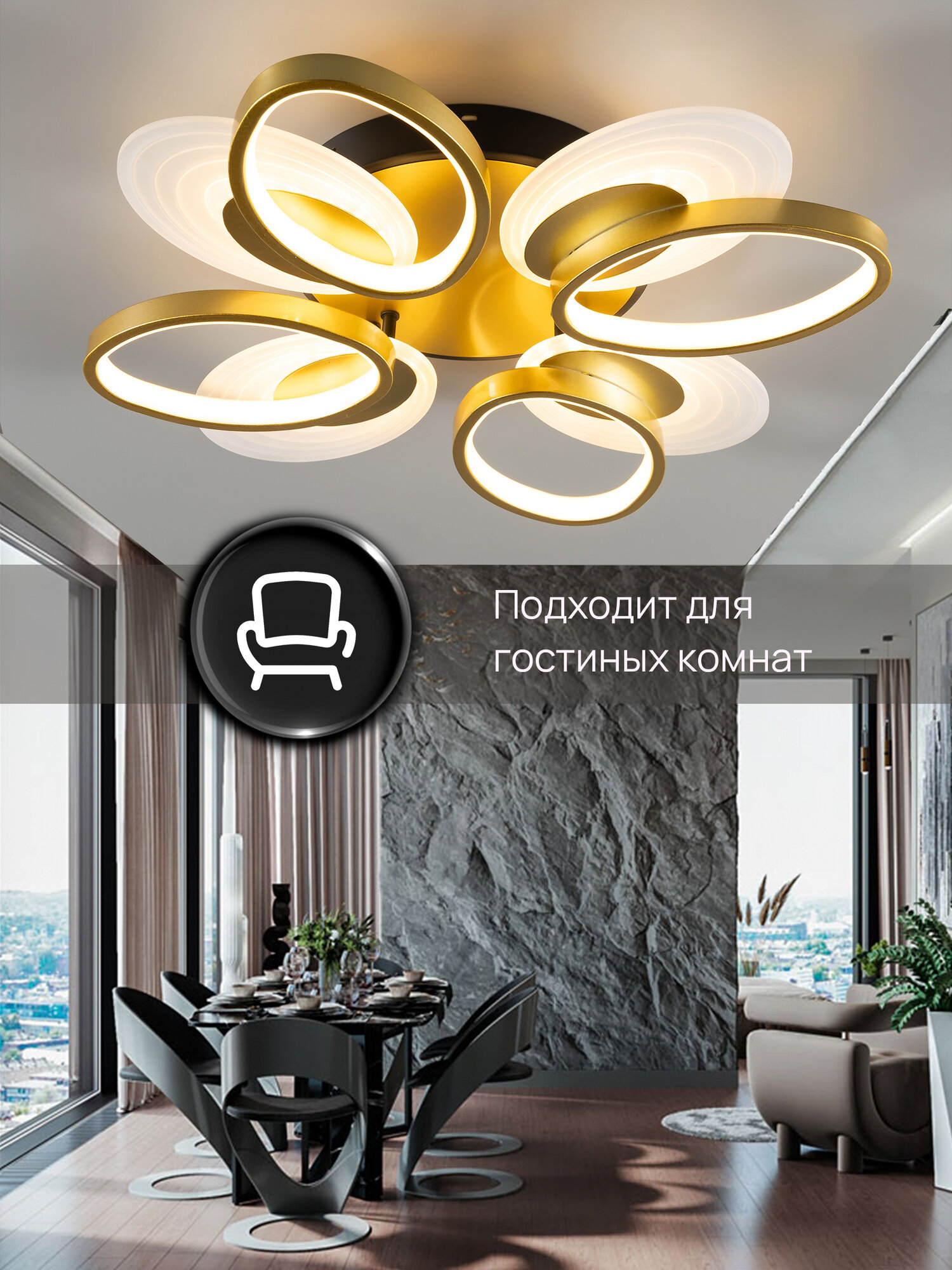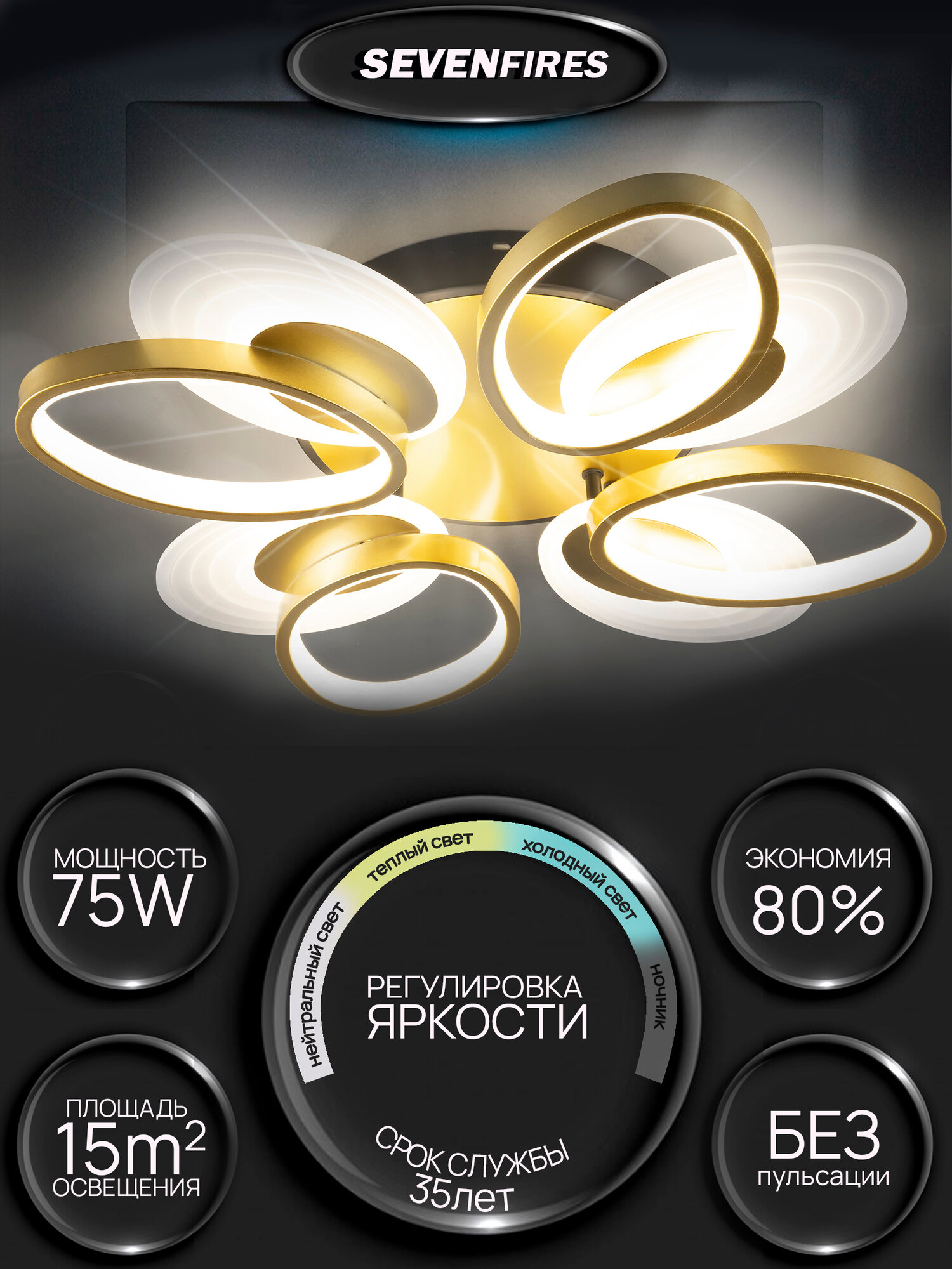 Люстра потолочная светодиодная Семь Огней, золотая, с пультом интересное: