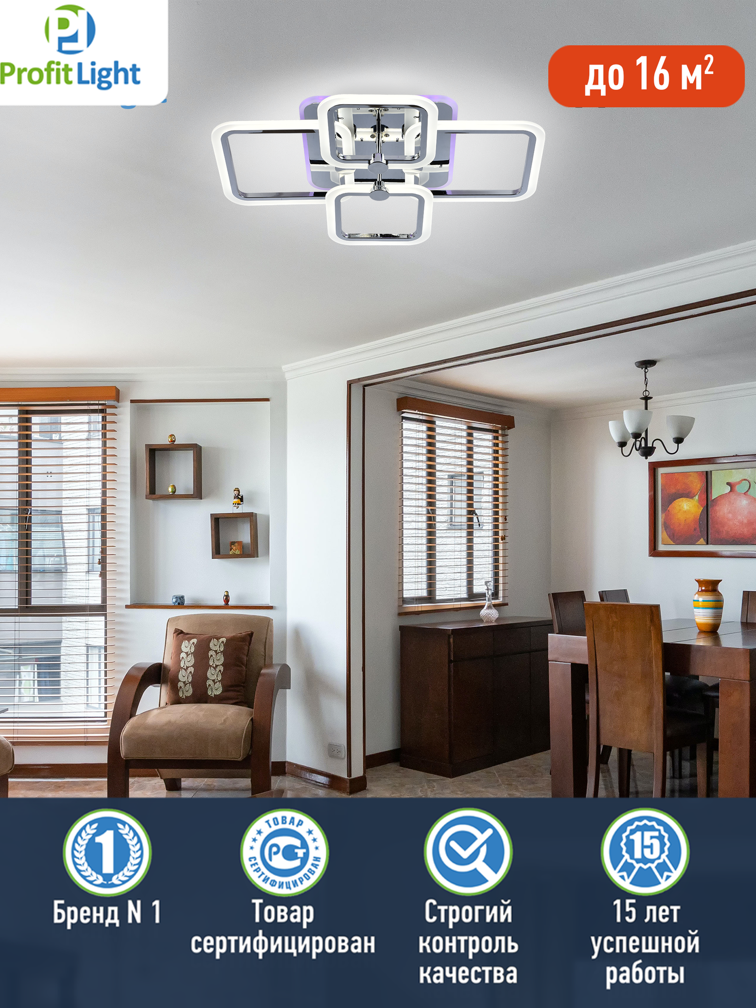 Люстра потолочная светодиодная с пультом Profit Light 18070/4 CHR 108W+10W интересное: