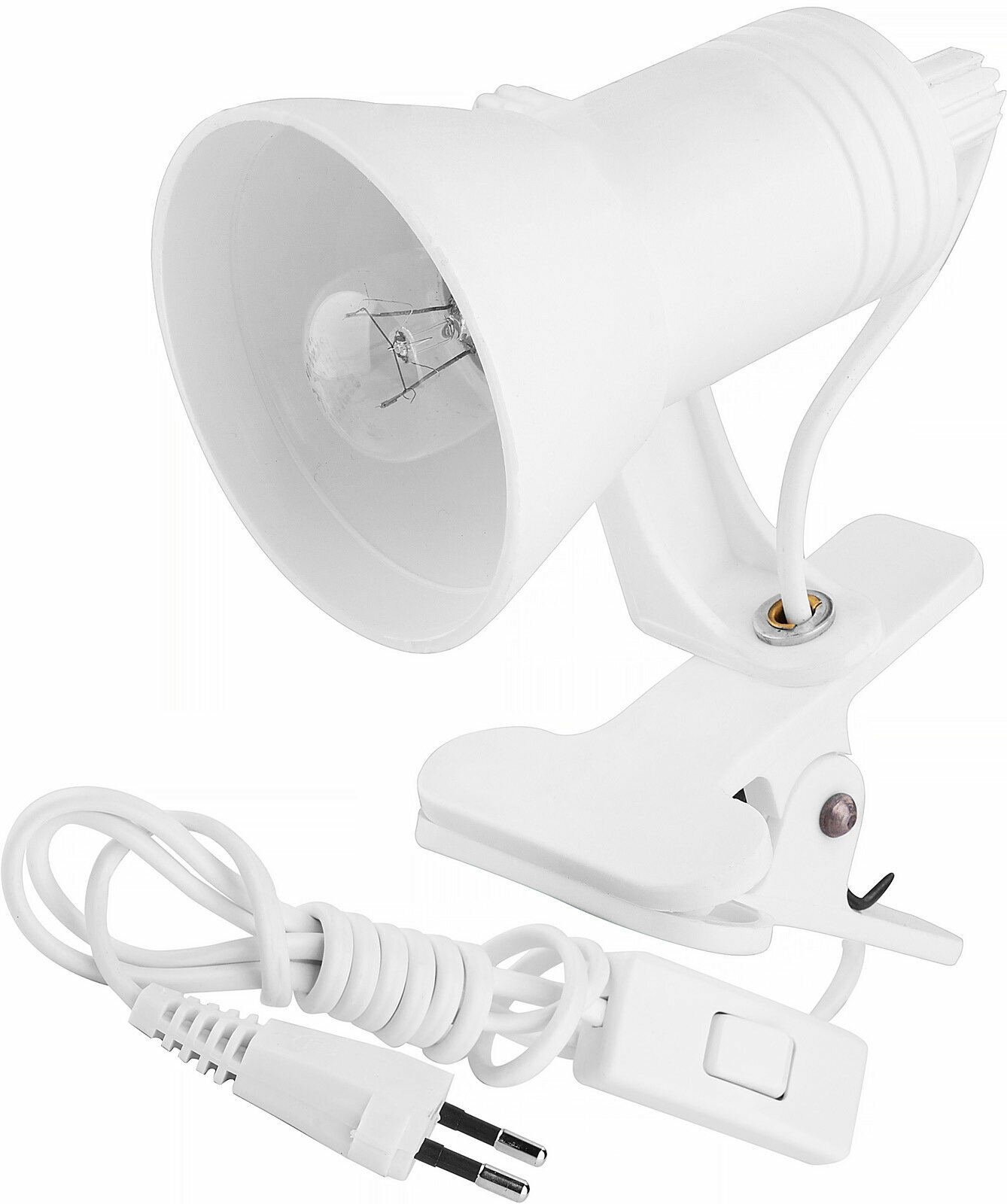 Купить Светильник на прищепке с проходным выключателем на шнуре белый. Номинальная мощность лампы не более 15 Вт.
