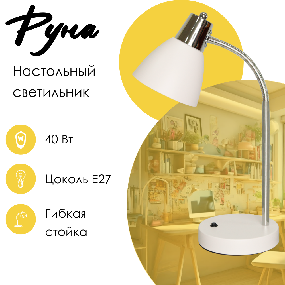 Лампа настольная Руна, 40Вт, 220В, ЛОН, E27, белый, Трансвит интересное: