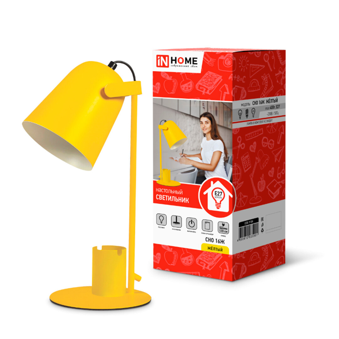Светильник настольный под лампу СНО 16Ж на основании 40Вт E27 230В с органайзером желтый IN HOME интересное: