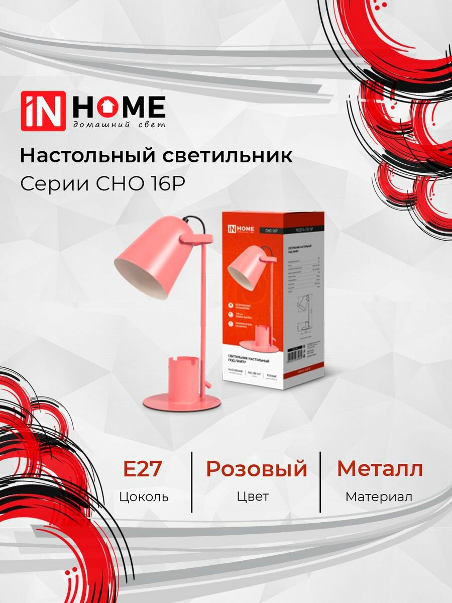 Светильник настольный под лампу на основании СНО 16Р 40Вт E27 230В с органайзером РОЗОВЫЙ IN HOME интересное: