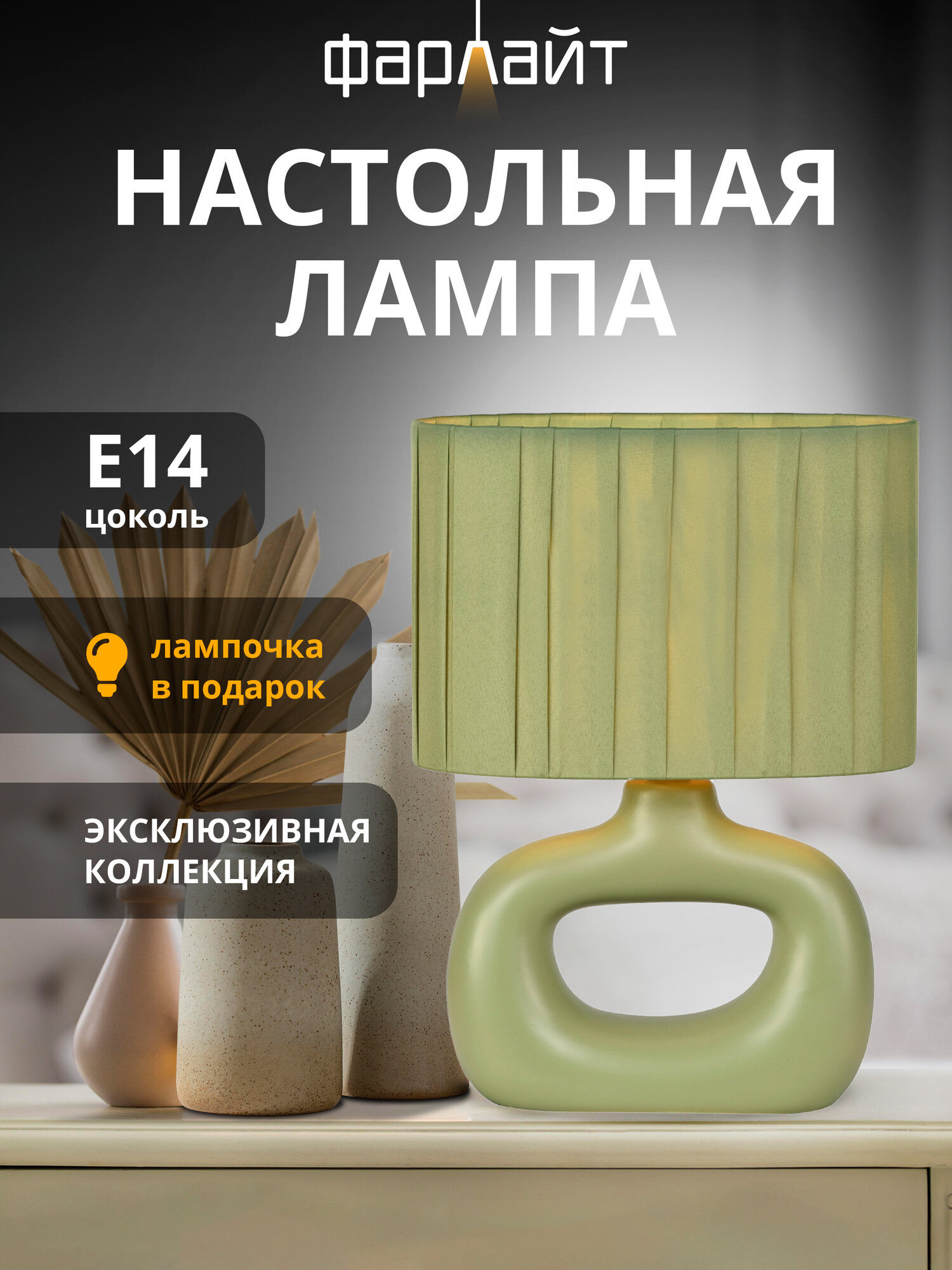 Светильник настольный декоративный "Уют" Е14 оливковый Фарлайт интересное: