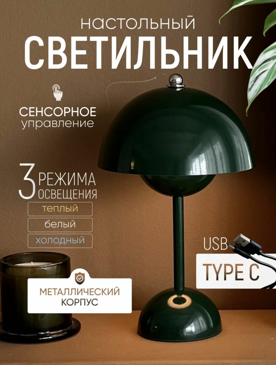 Лампа настольная/Светильник прикроватный Грибок + адаптер на евро вилку (Ростест) интересное: