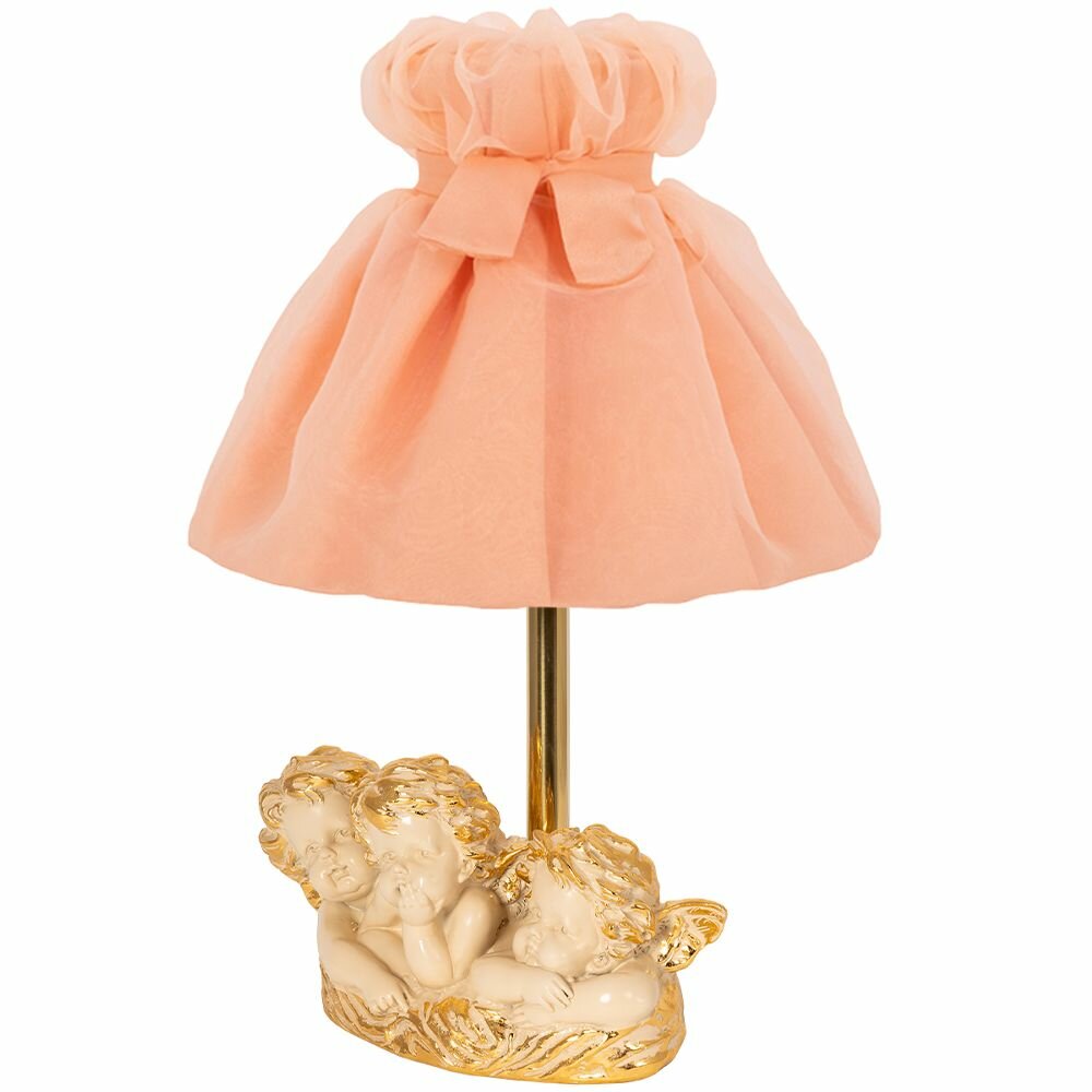 Светильник настольный Bogacho Веселые Купидоны белый с серебром с абажуром Мадлен пудрового цвета