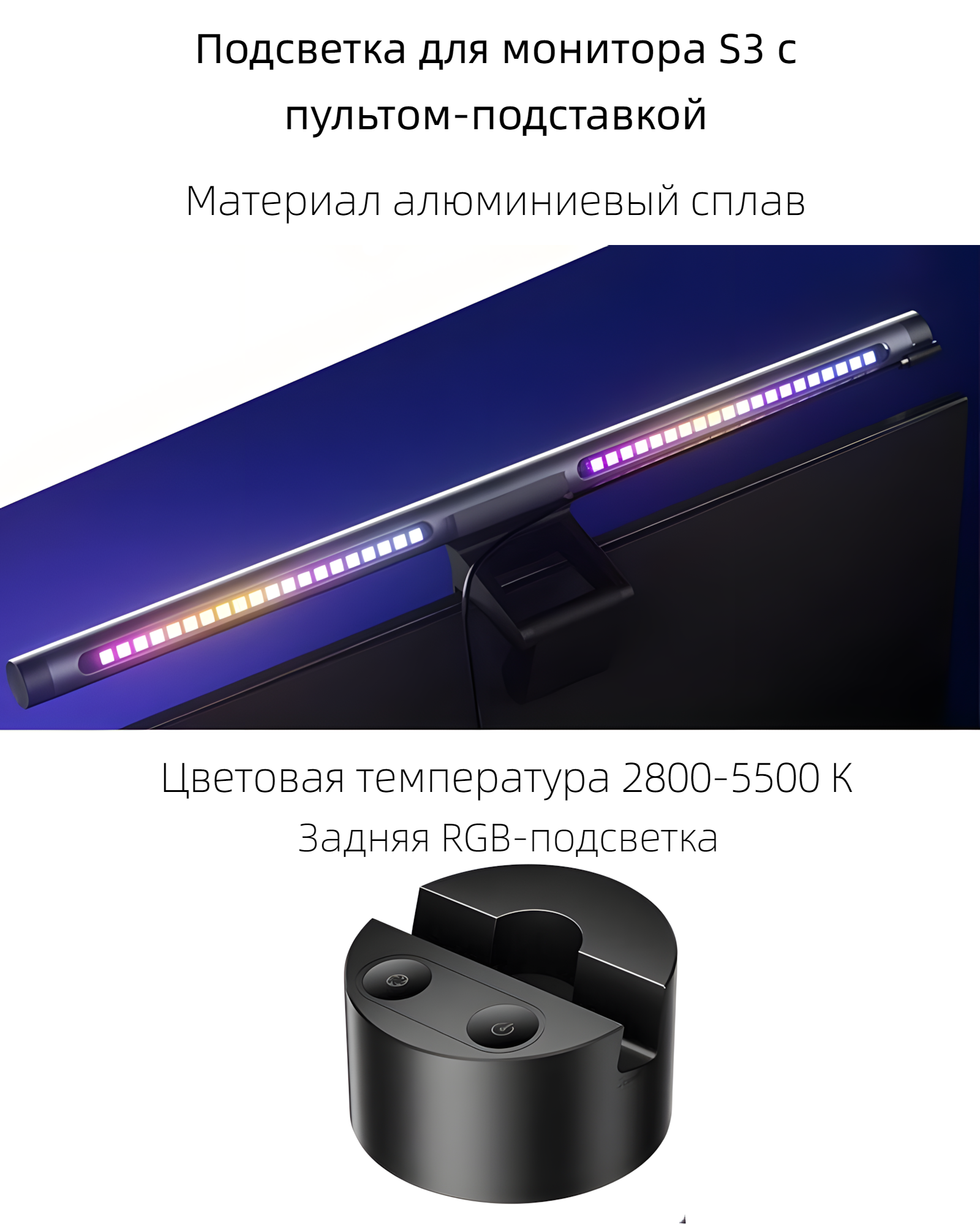 СохранитьПодсветка для монитора S3 с пультом-подставкой, алюминиевый сплав, задняя RGB-подсветка, 2800-5500 К, серый интересное: