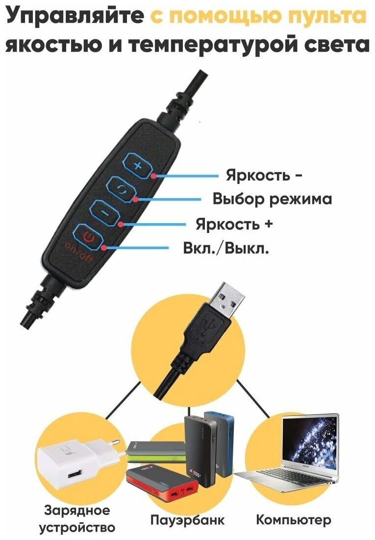 Маленькая Кольцевая лампа с гибким штативом на прищепке 9 см / Маленькая кольцевая лампа с гибким держателем для телефона интересное:
