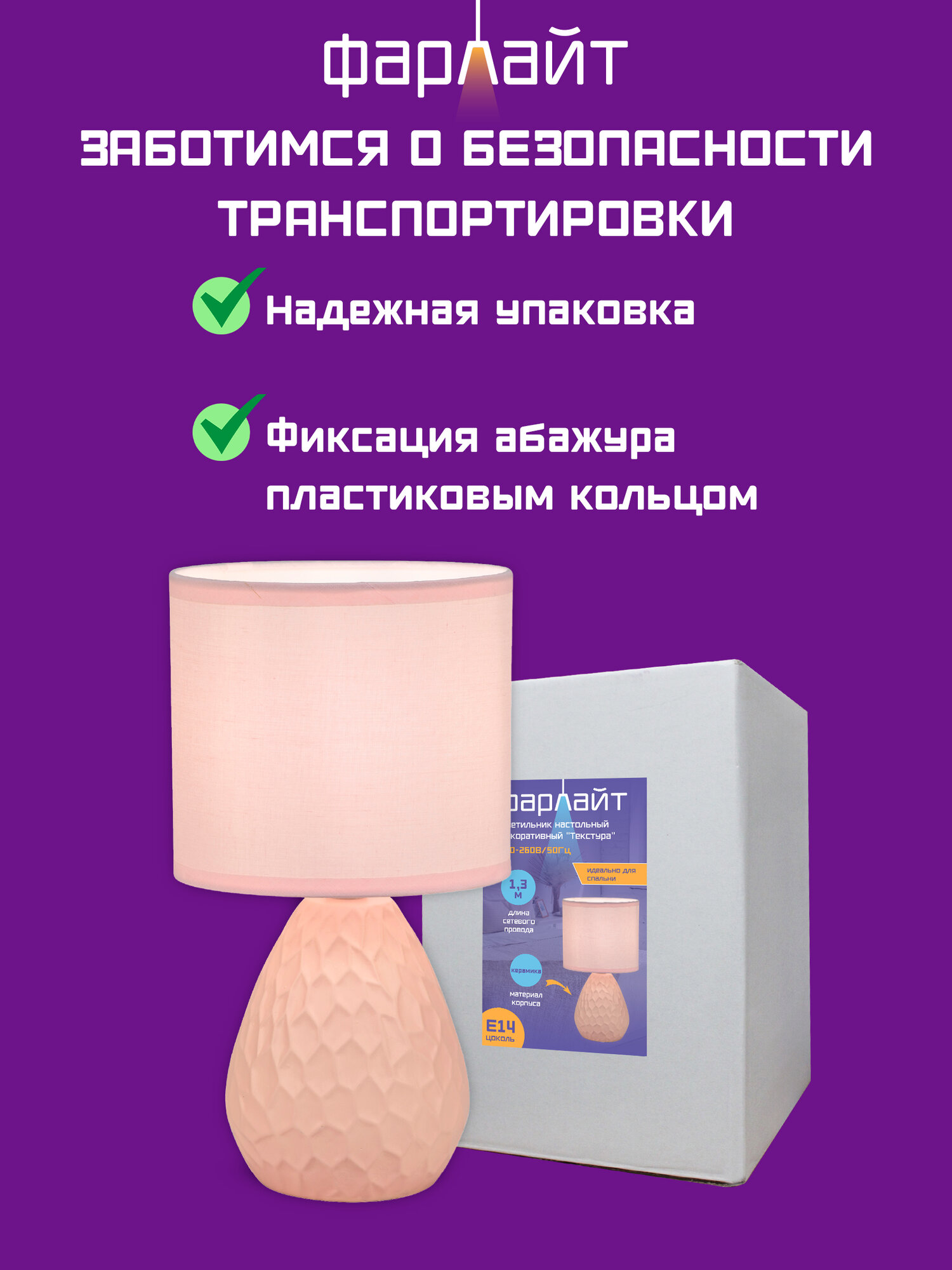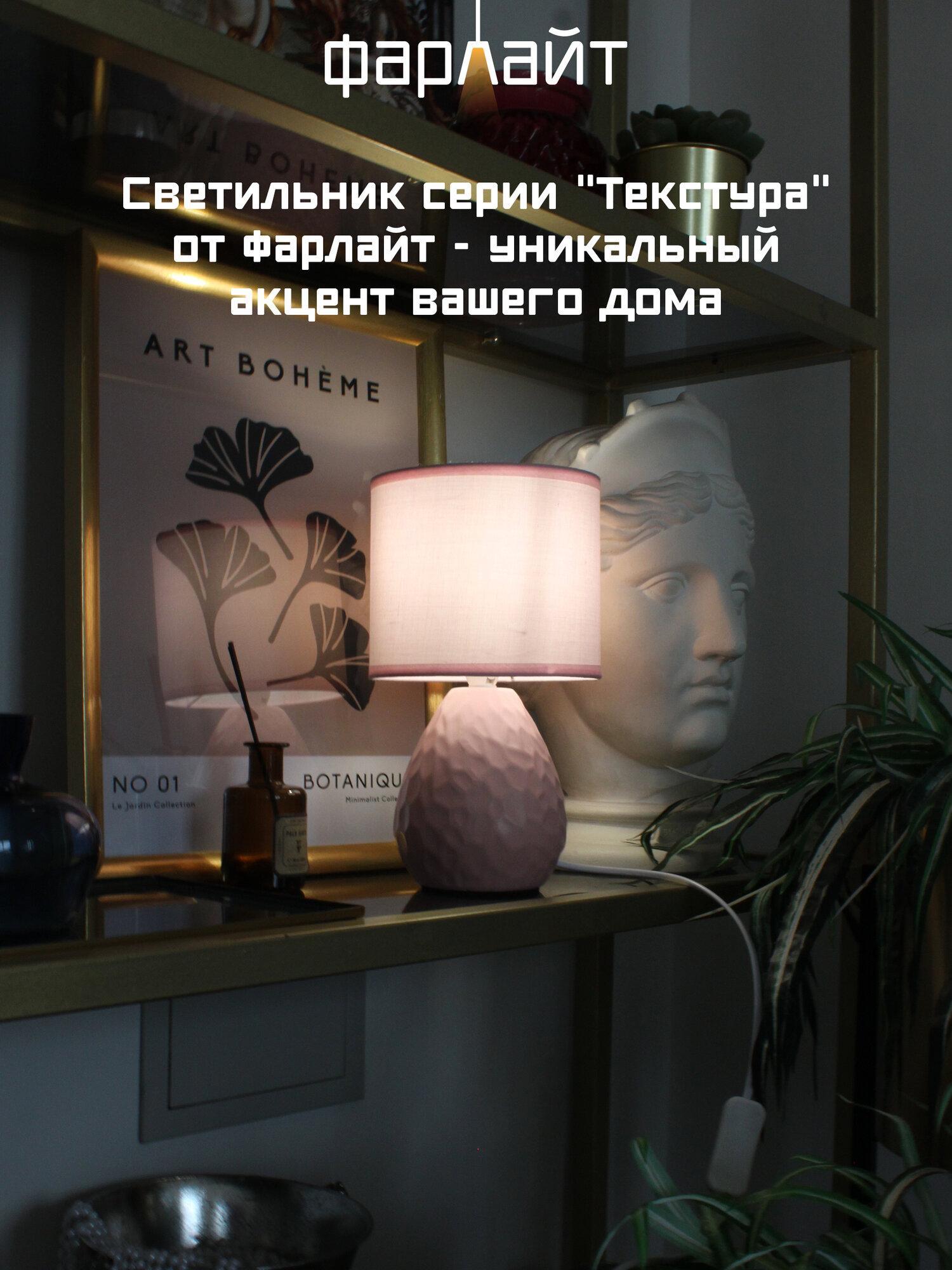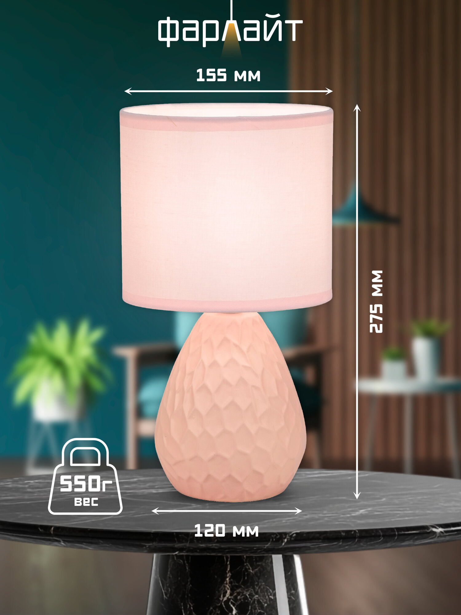 Светильник настольный декоративный "Текстура" Е14 розовый Фарлайт интересное: