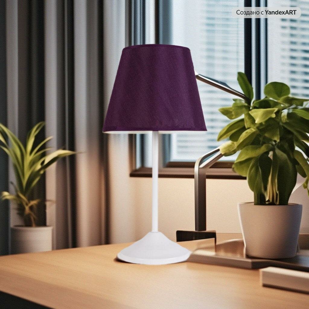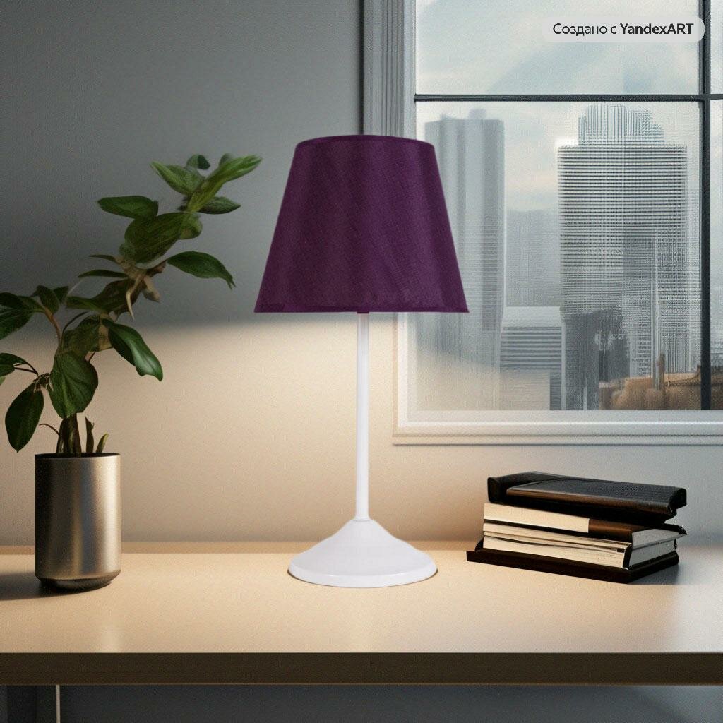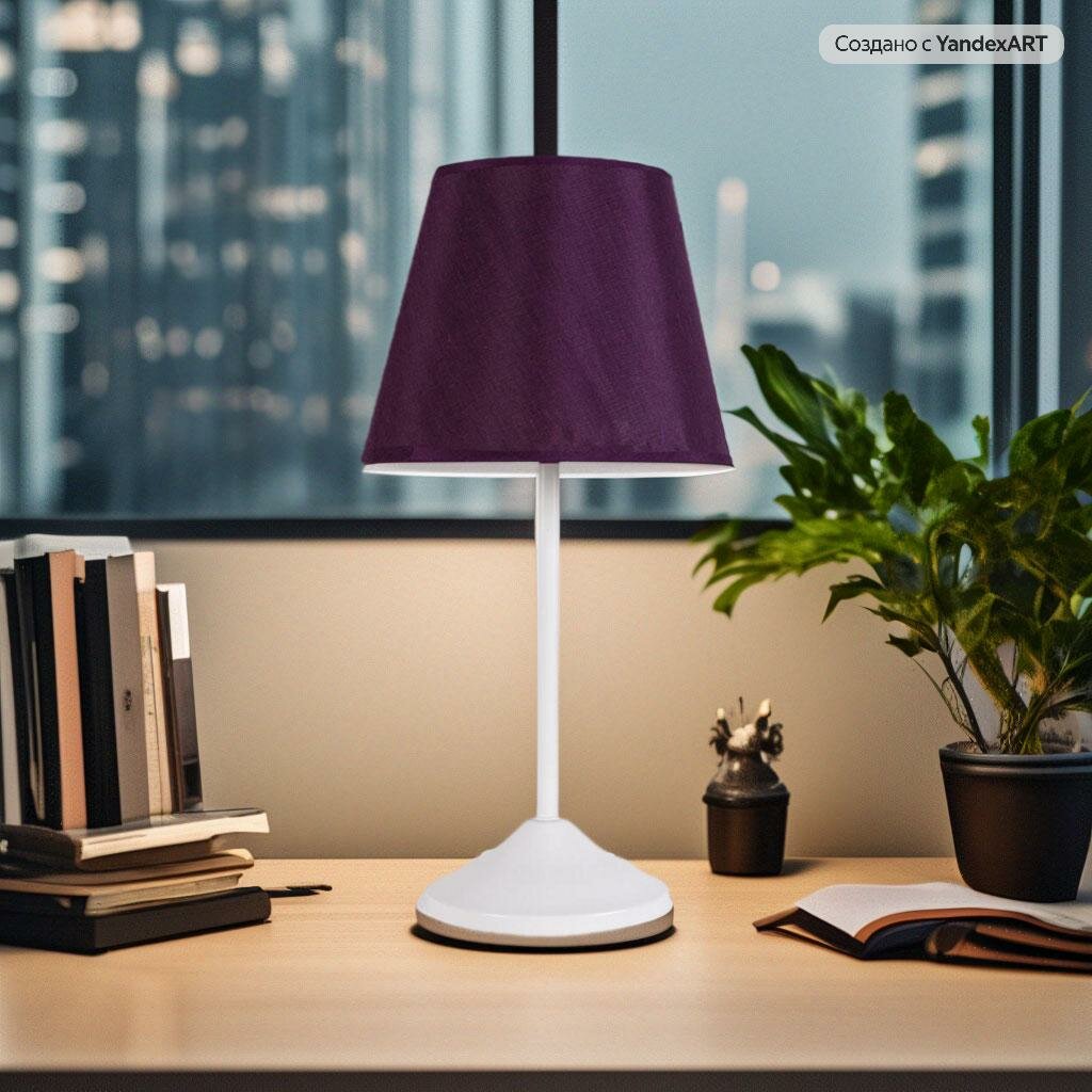 Светильник настольный, торшер интерьерный, основание белое , цвет абажура фиолетовый 40329Ф интересное: