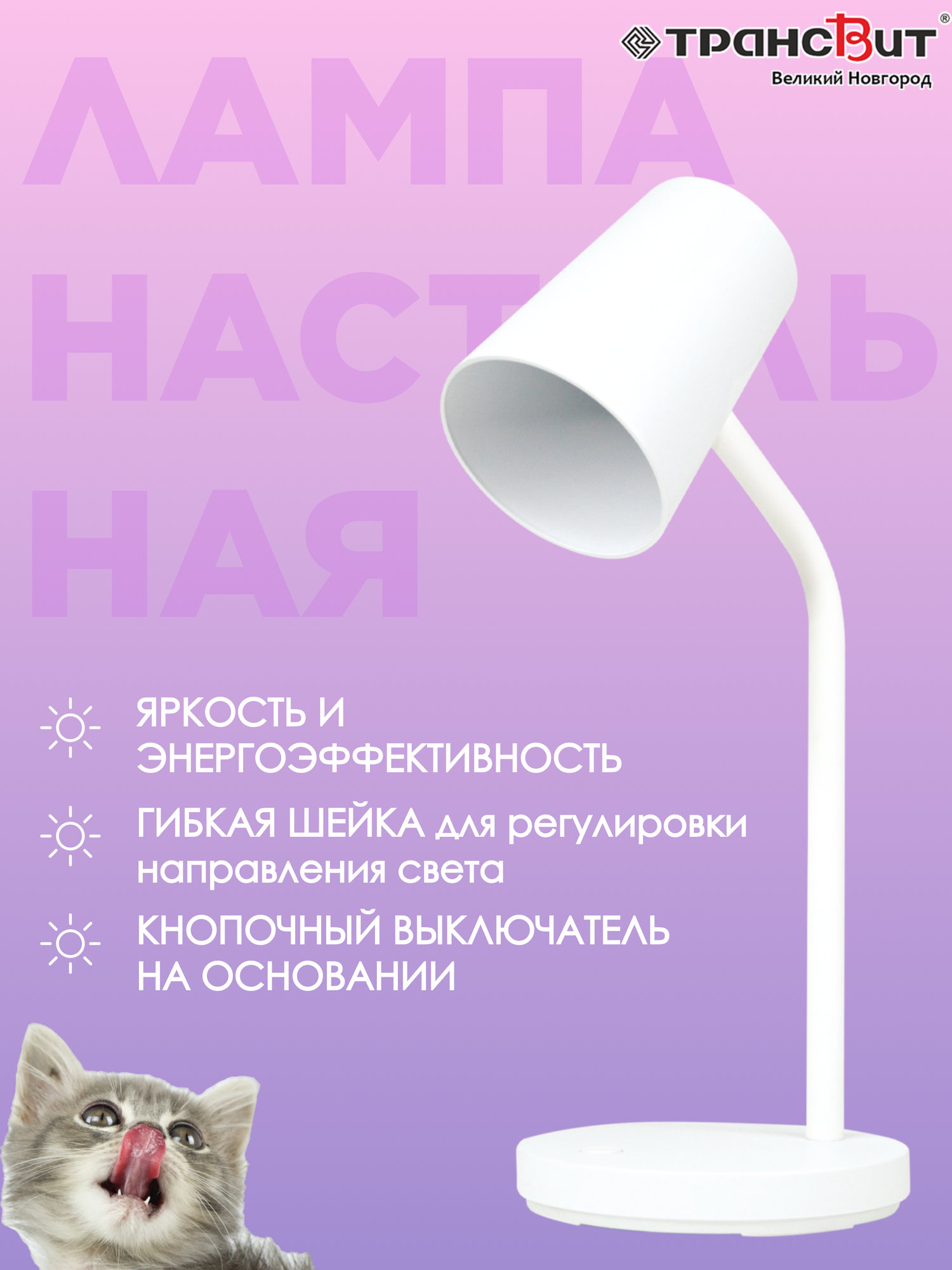 Лампа настольная Аврора на гибкой стойке, Е27, для школьника, для маникюра, для чтения, 15 Вт, белый, Трансвит интересное: