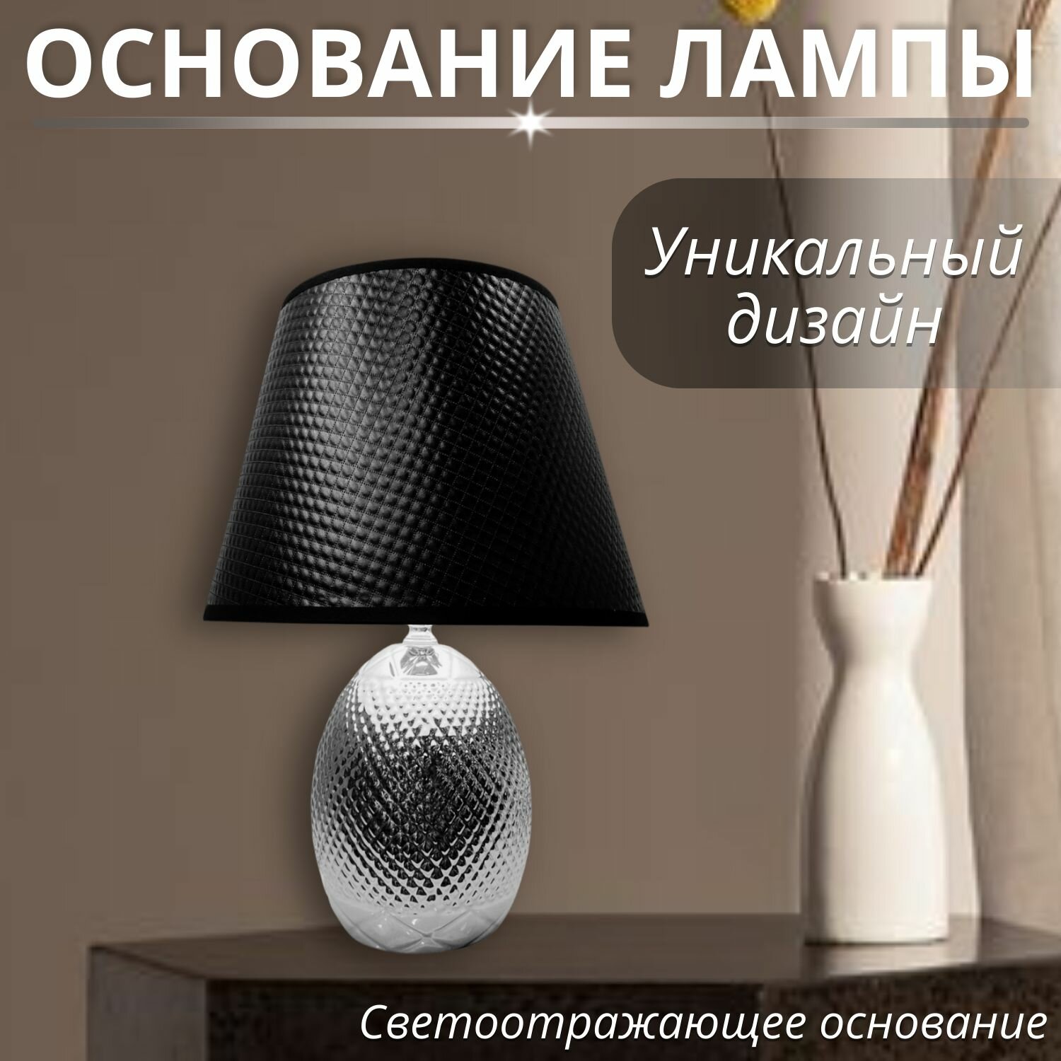 Лампа настольная, 395-ОК, Светильник прикроватный на тумбочку, Цвет - Хром - Черный, Е27, h36см интересное: