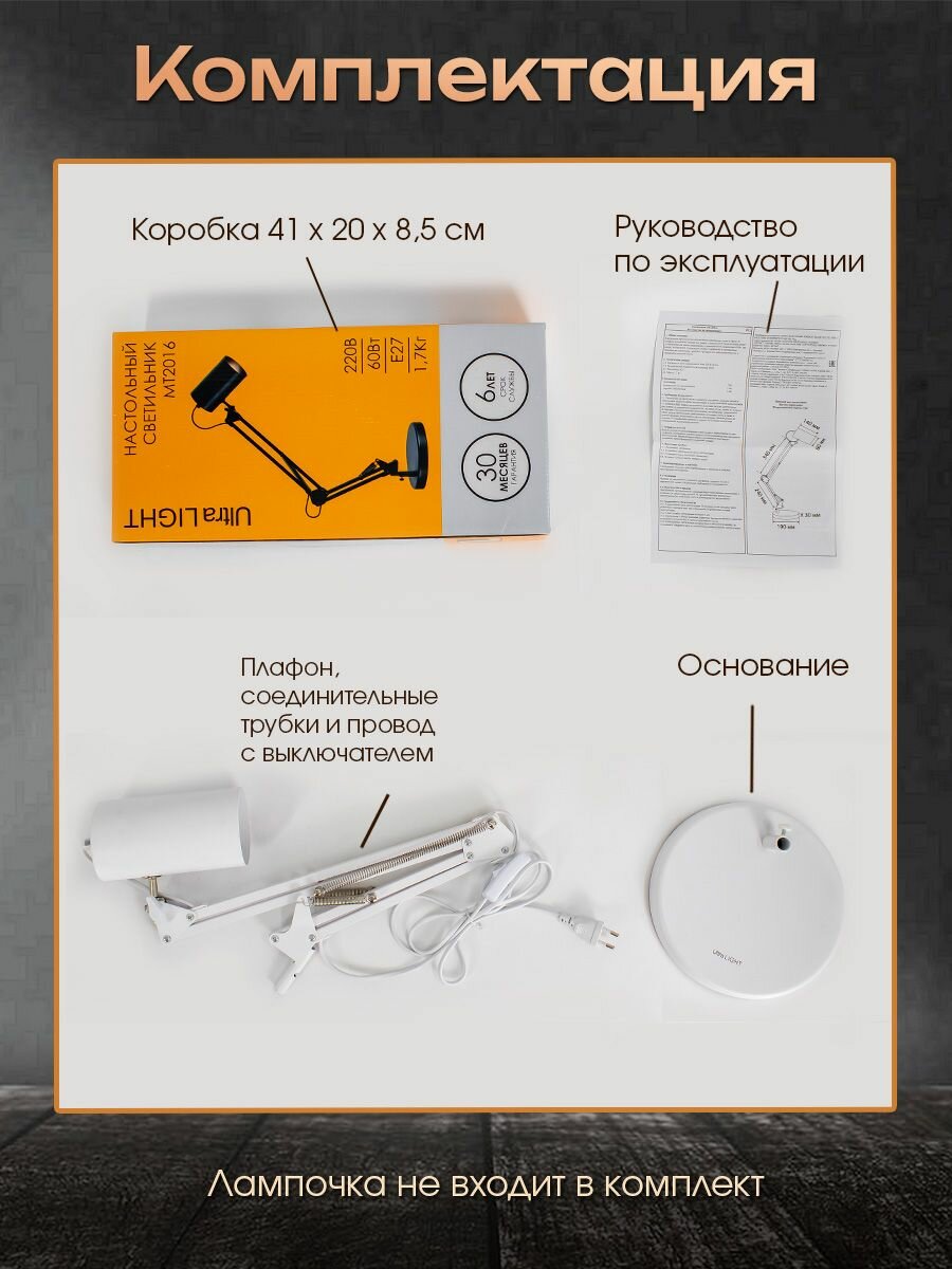 Настольная лампа светильник МТ2016 Белый E27 220В Ultra LIGHT интересное:
