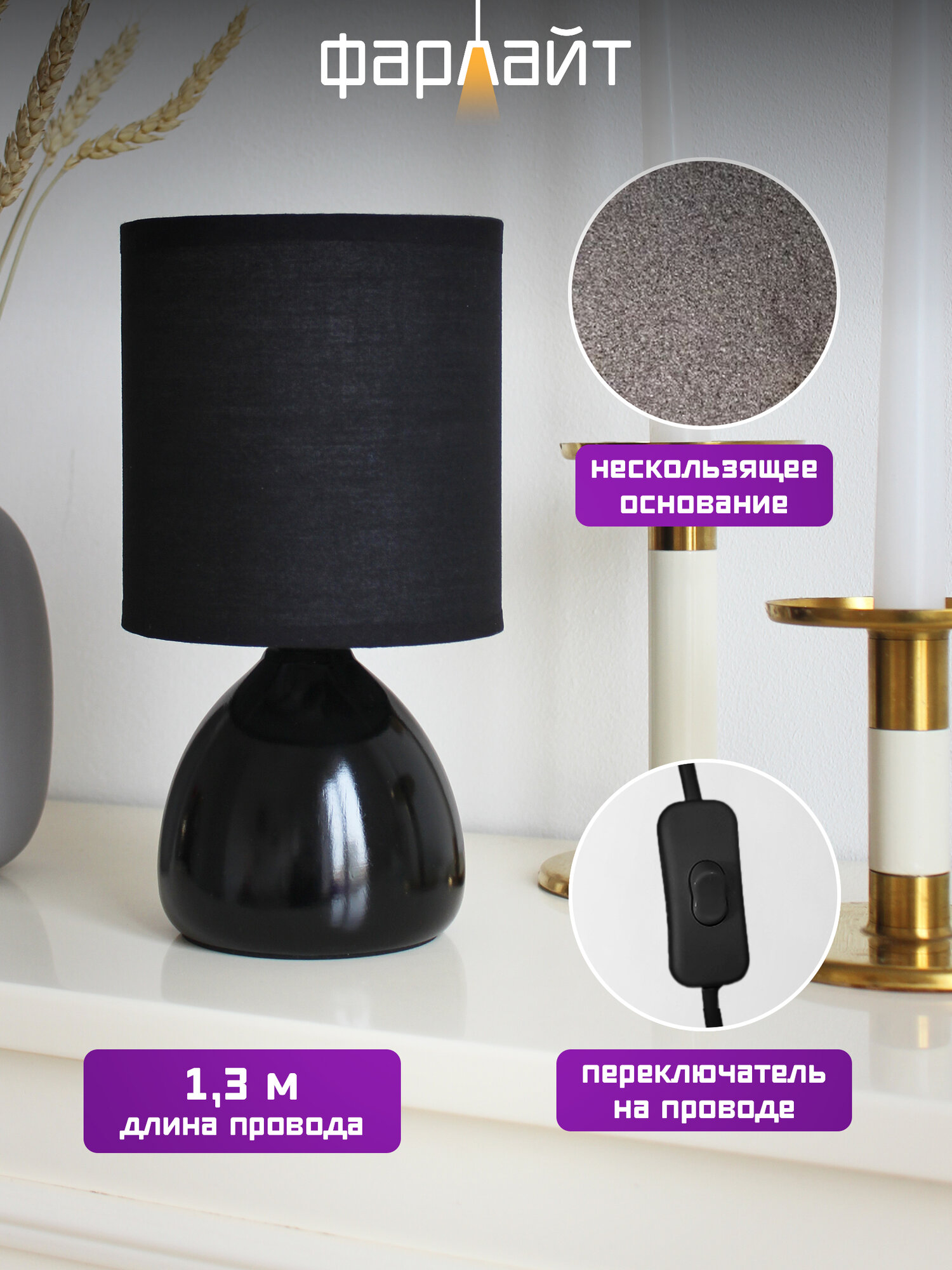 Светильник настольный декоративный "Жемчуг" черный Е14 Фарлайт интересное:
