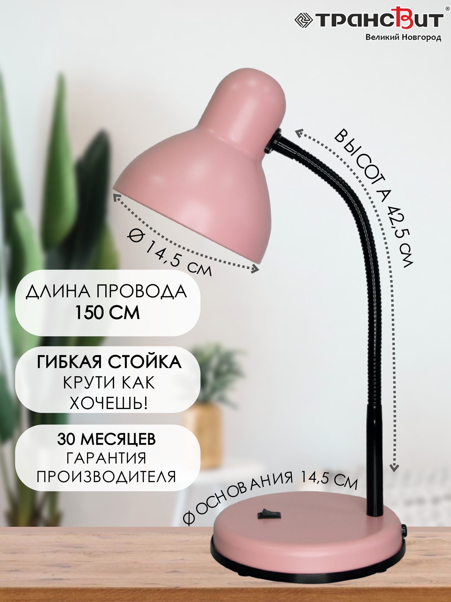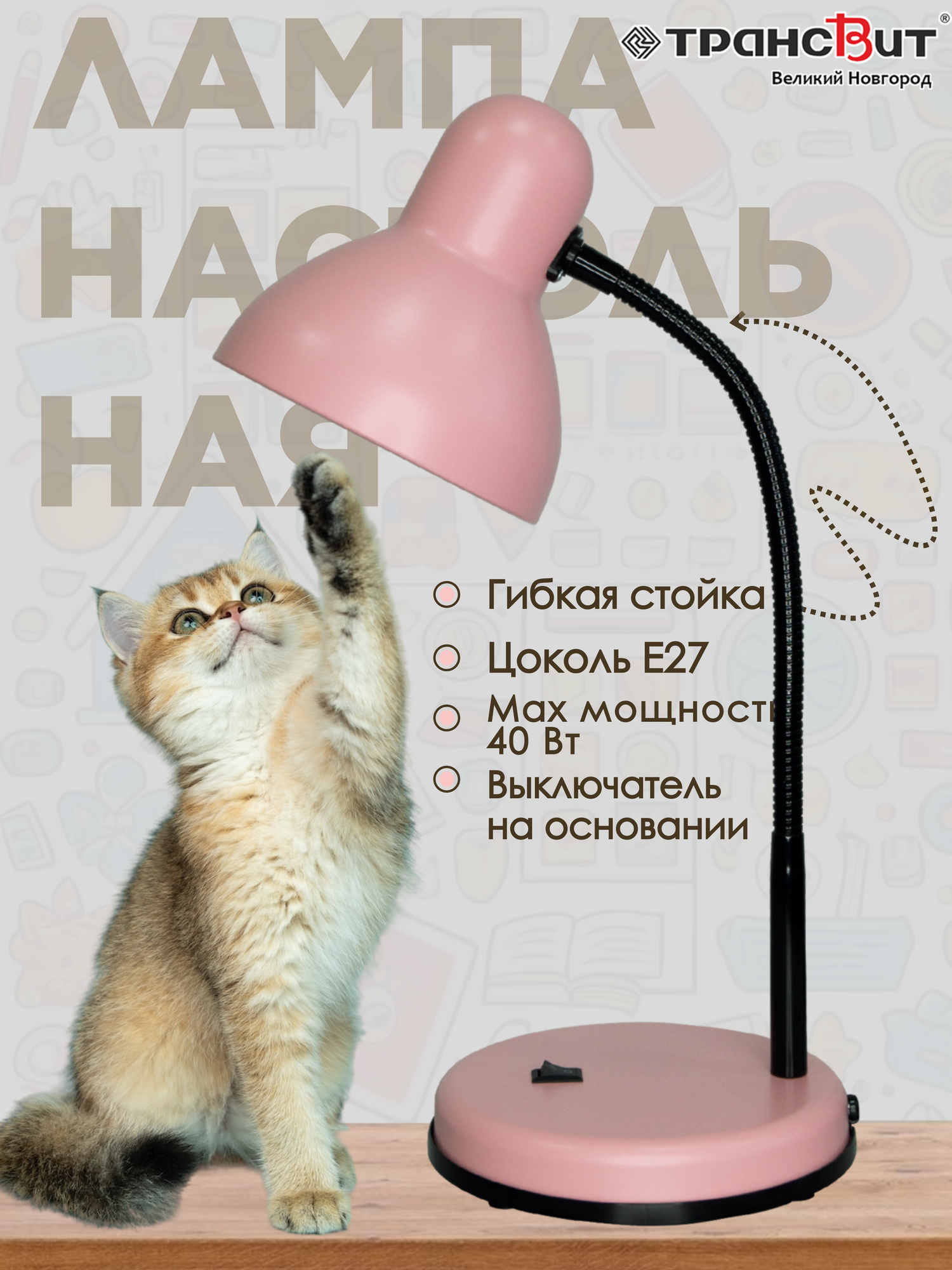 Лампа настольная Флинт, Е27, розовый, Трансвит интересное: