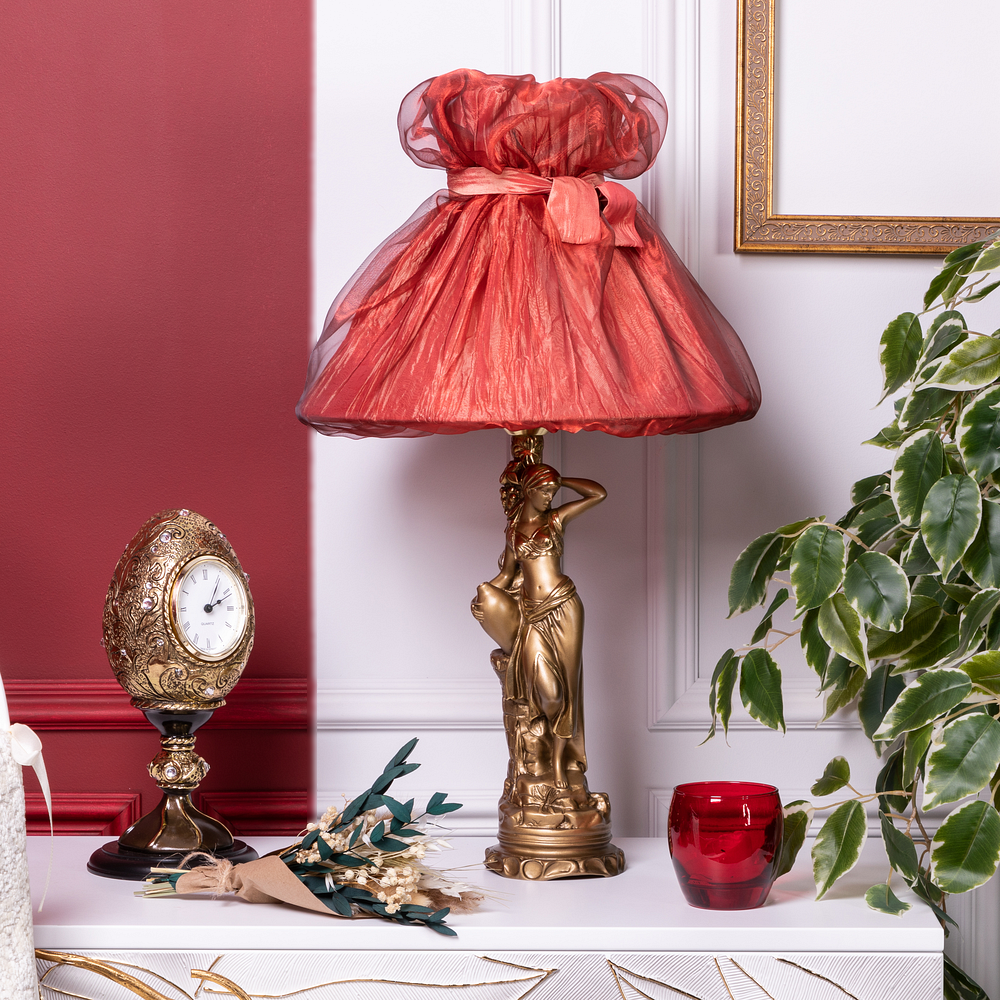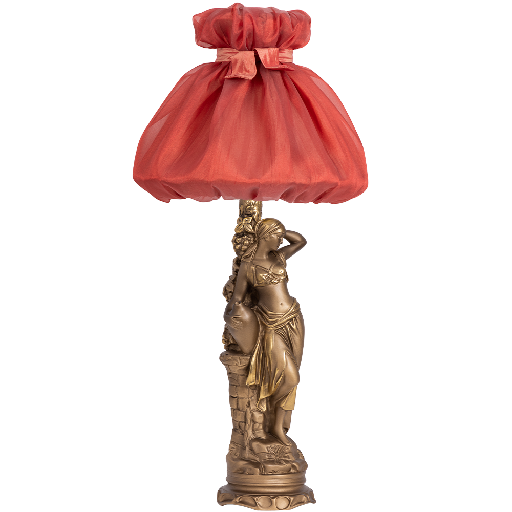 Купить Настольная лампа Bogacho Девушка с кувшином бронзовая с бордовым абажуром Мадлен