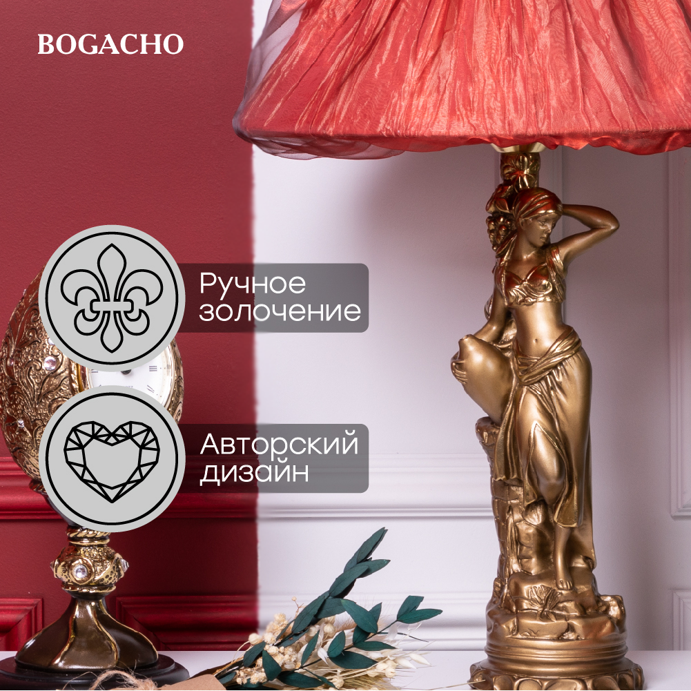 Настольная лампа Bogacho Девушка с кувшином бронзовая с бордовым абажуром Мадлен интересное: