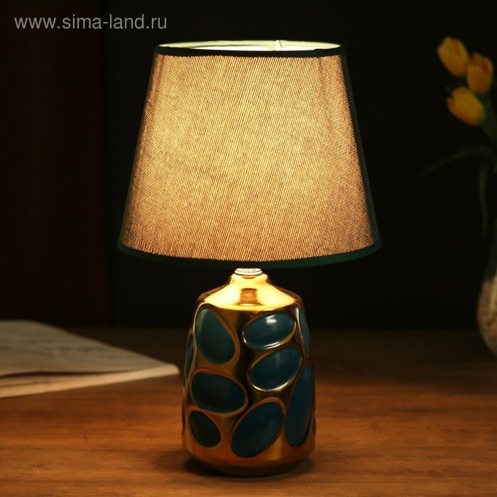 Купить Лампа настольная керамика "Пузырьки" тёмно-зелёная с золотом Е14 40Вт 33х20х20 см, 4415762