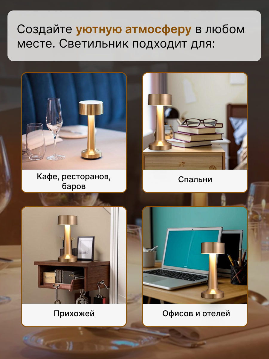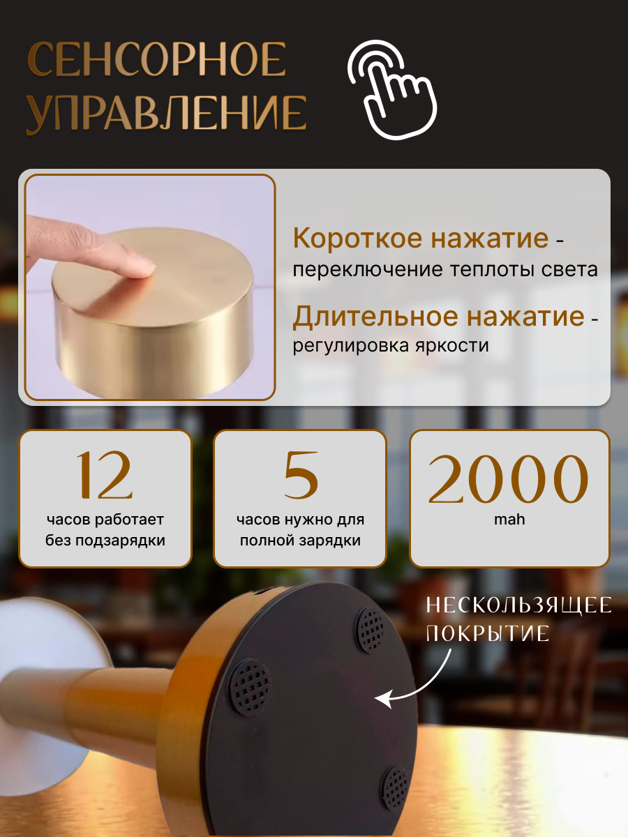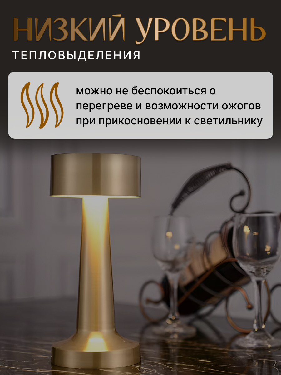 Настольная лампа для ресторана на батарейках с USB-зарядкой и сенсорным управлением интересное: