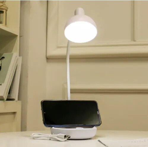 Настольная лампа с регулируемой яркостью - подставка под телефон, белая интересное: