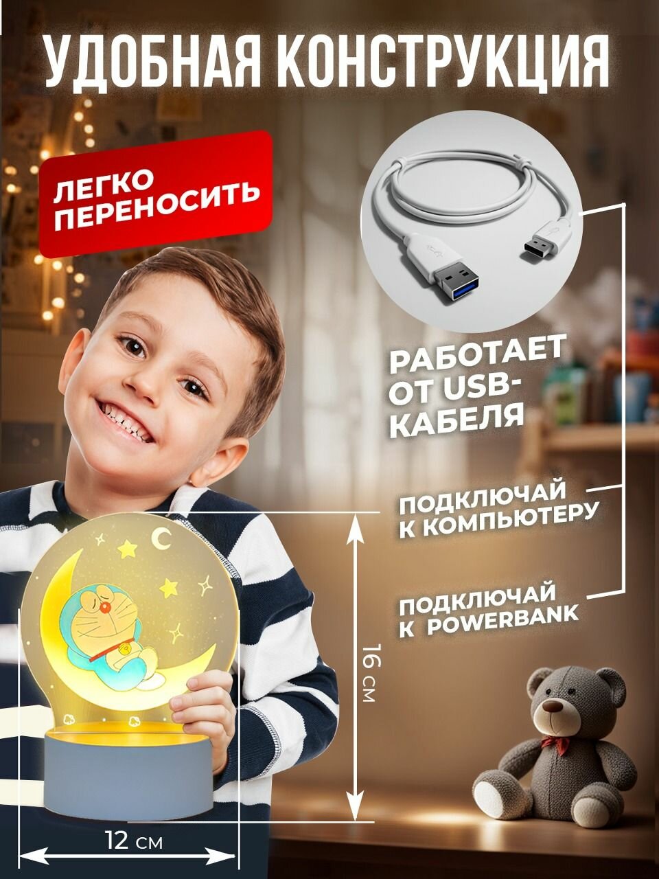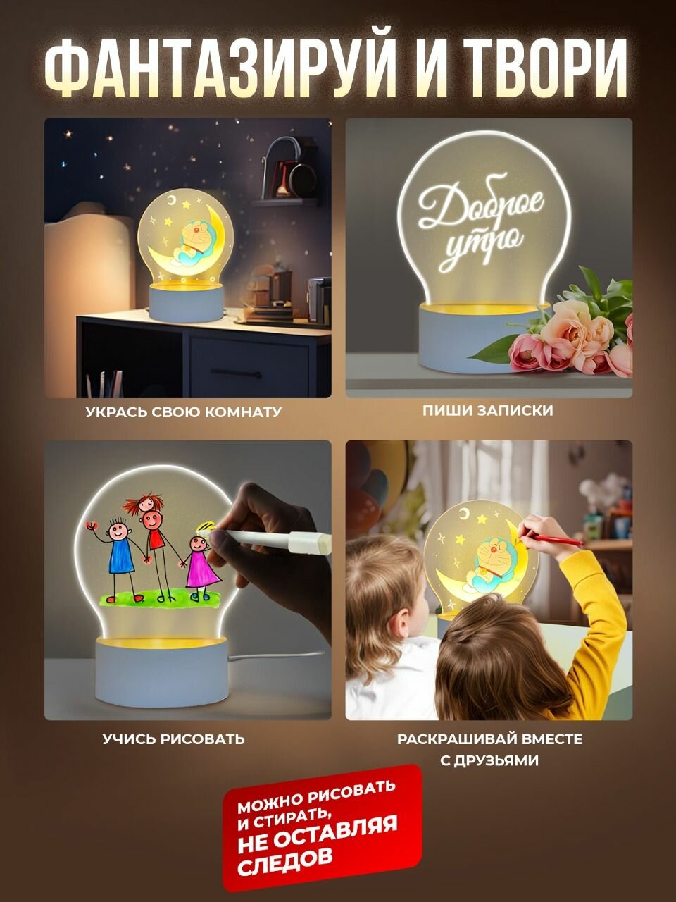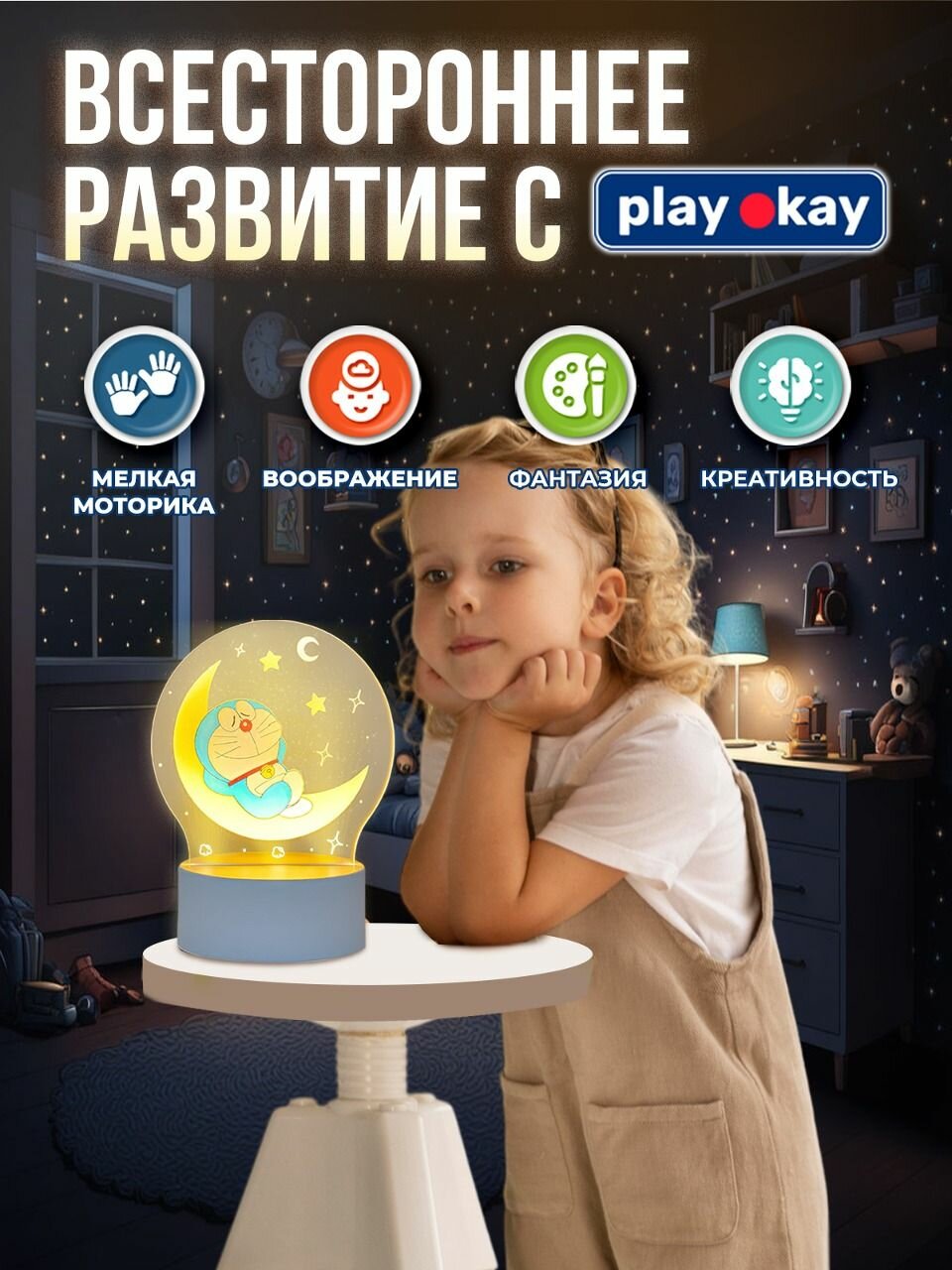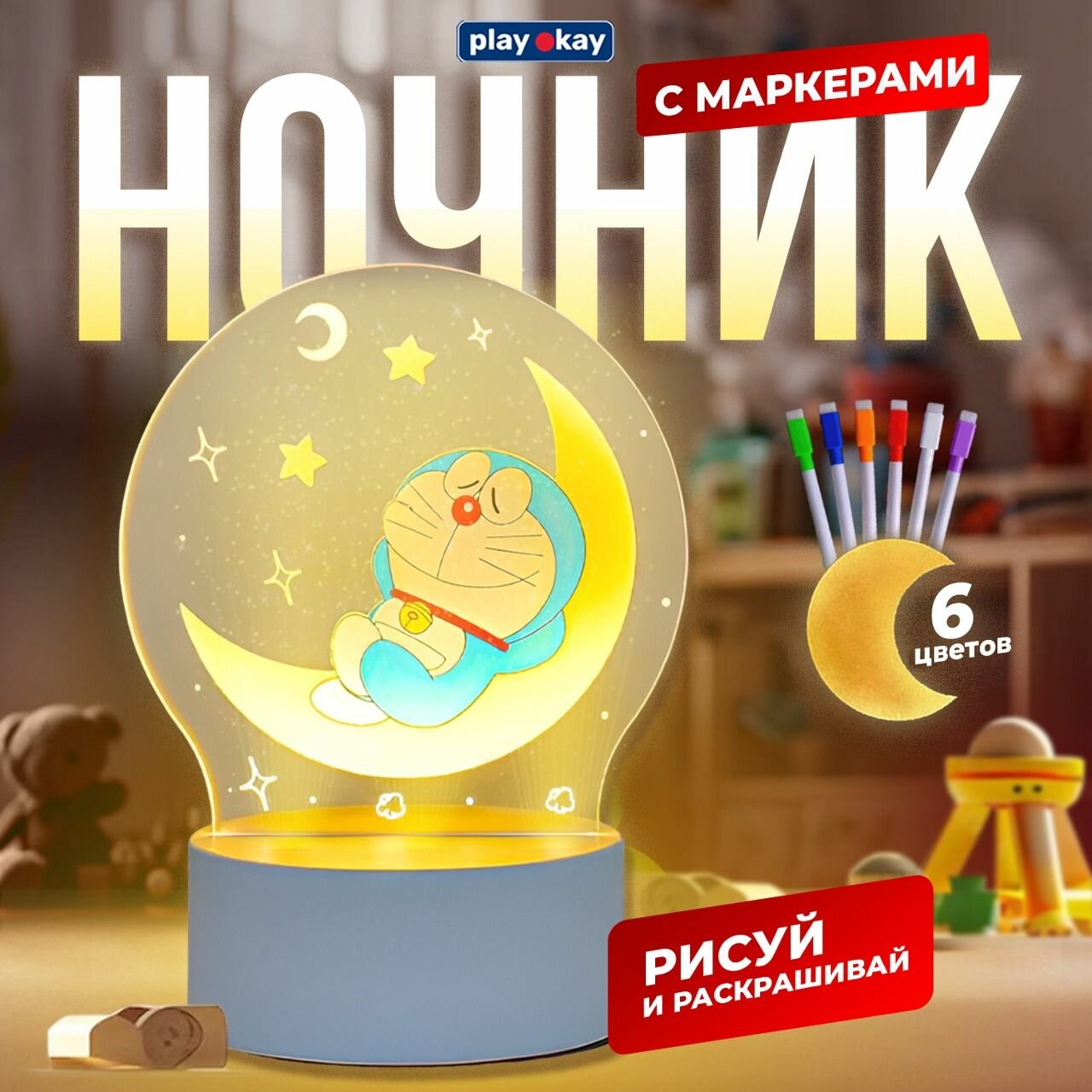 Ночник с маркером PlayOkay для мальчика и девочки, 6 цветов, набор для рисования, USB-кабель для питания интересное:
