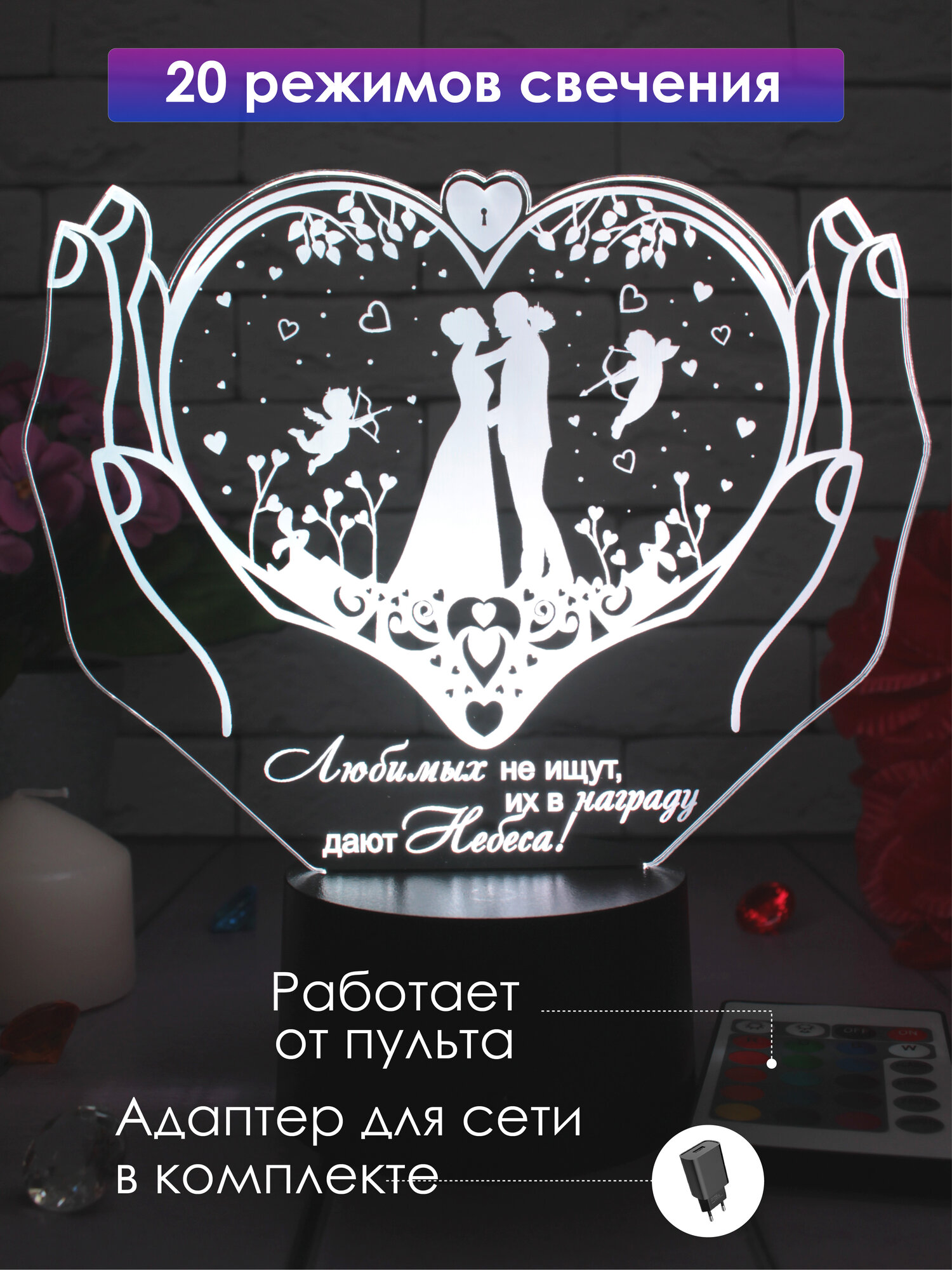 Ночник "Свадебный" подарок на свадьбу невесте жениху на годовщину супруге супругу молодоженам декор