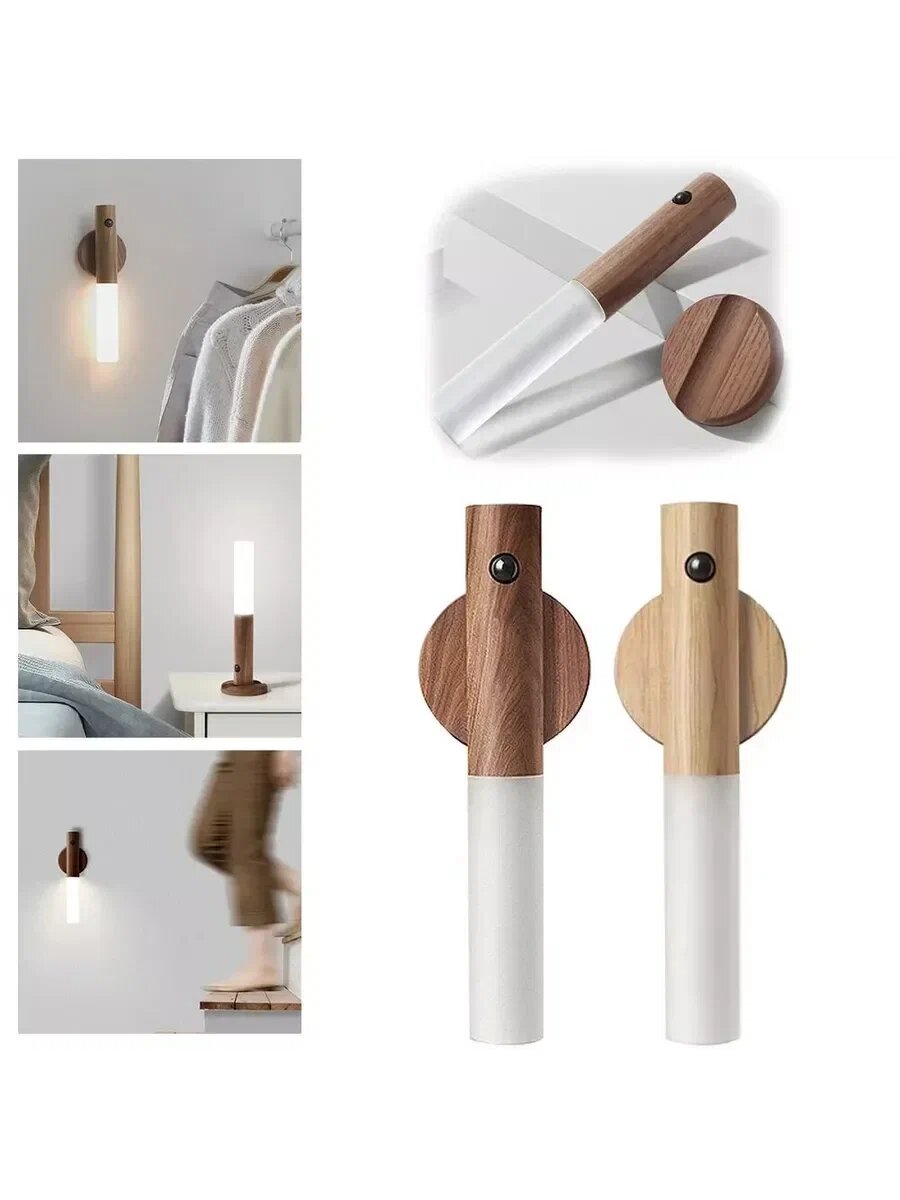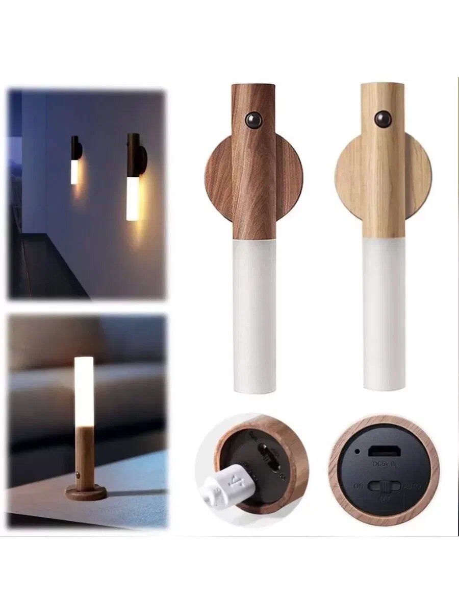 Беспроводной умный светильник с датчиком движения и аккумулятором, ночник для дома и дачи, коричневый