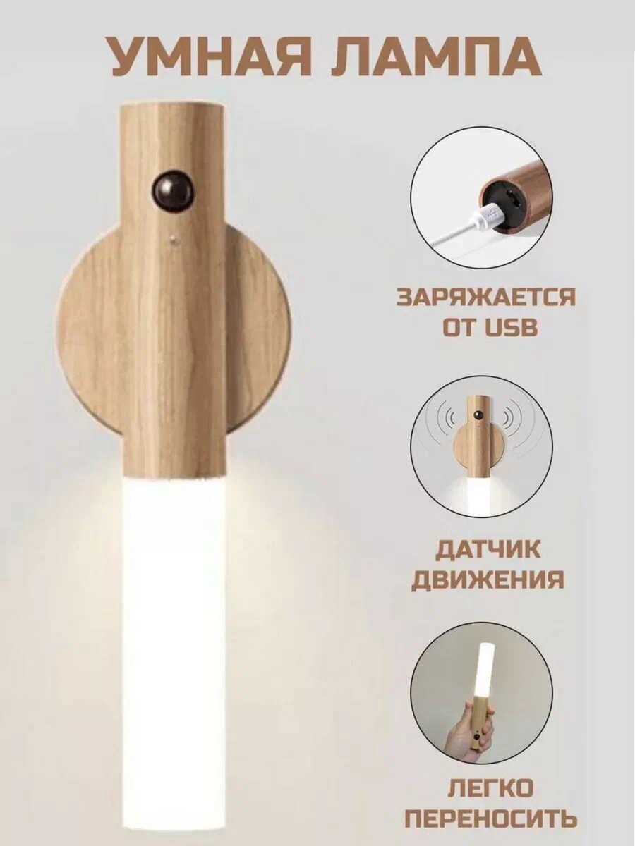 Беспроводной умный светильник с датчиком движения и аккумулятором, ночник для дома и дачи, бежевый интересное: