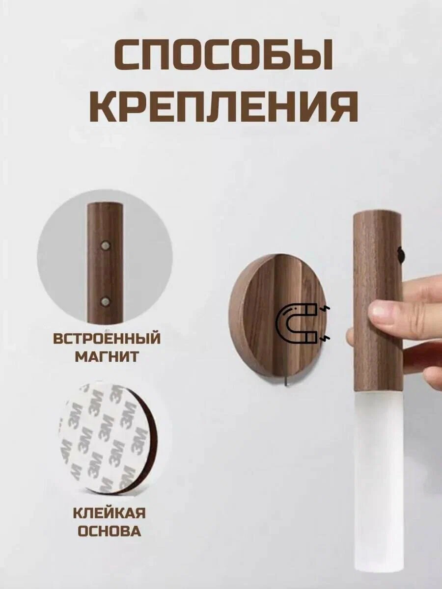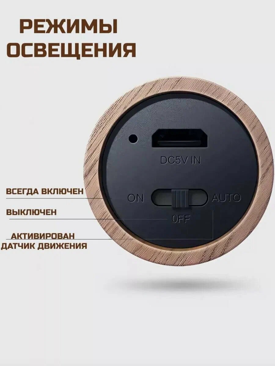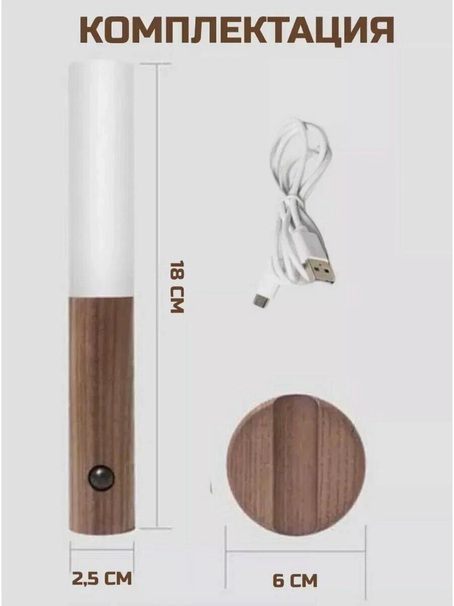 Беспроводной умный светильник с датчиком движения и аккумулятором, ночник для дома и дачи, коричневый интересное: